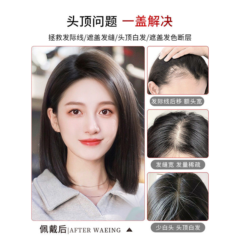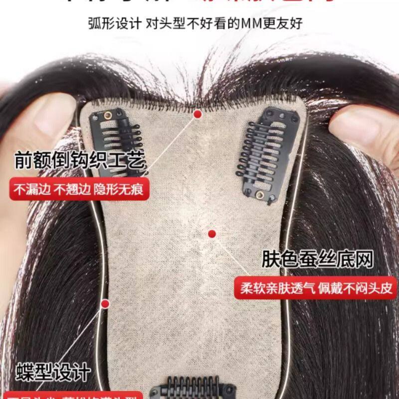 假发片女头顶补发蓬松增发量全真人发遮白发轻薄无痕刘海递针发片