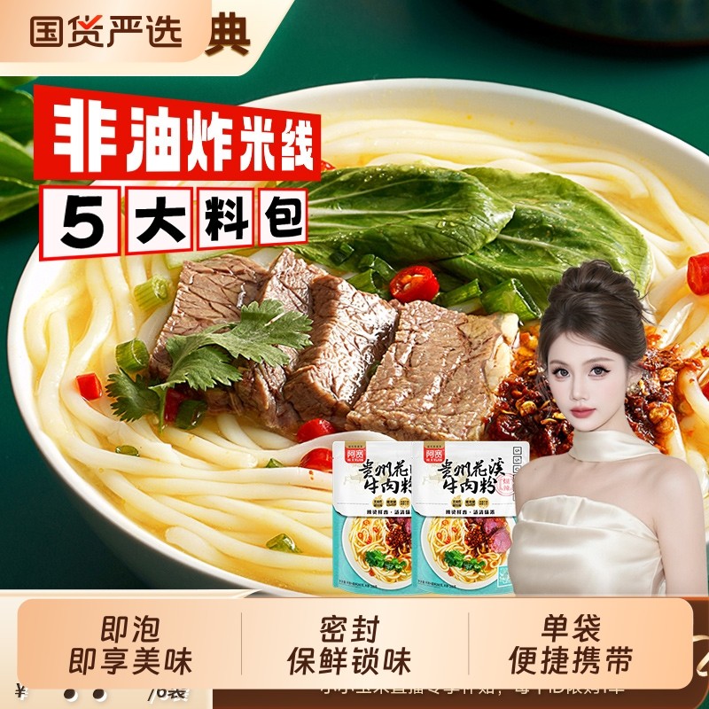 庆典阿宽贵州花溪牛肉粉米粉米线方便粉丝冲泡速食袋装非油炸多种