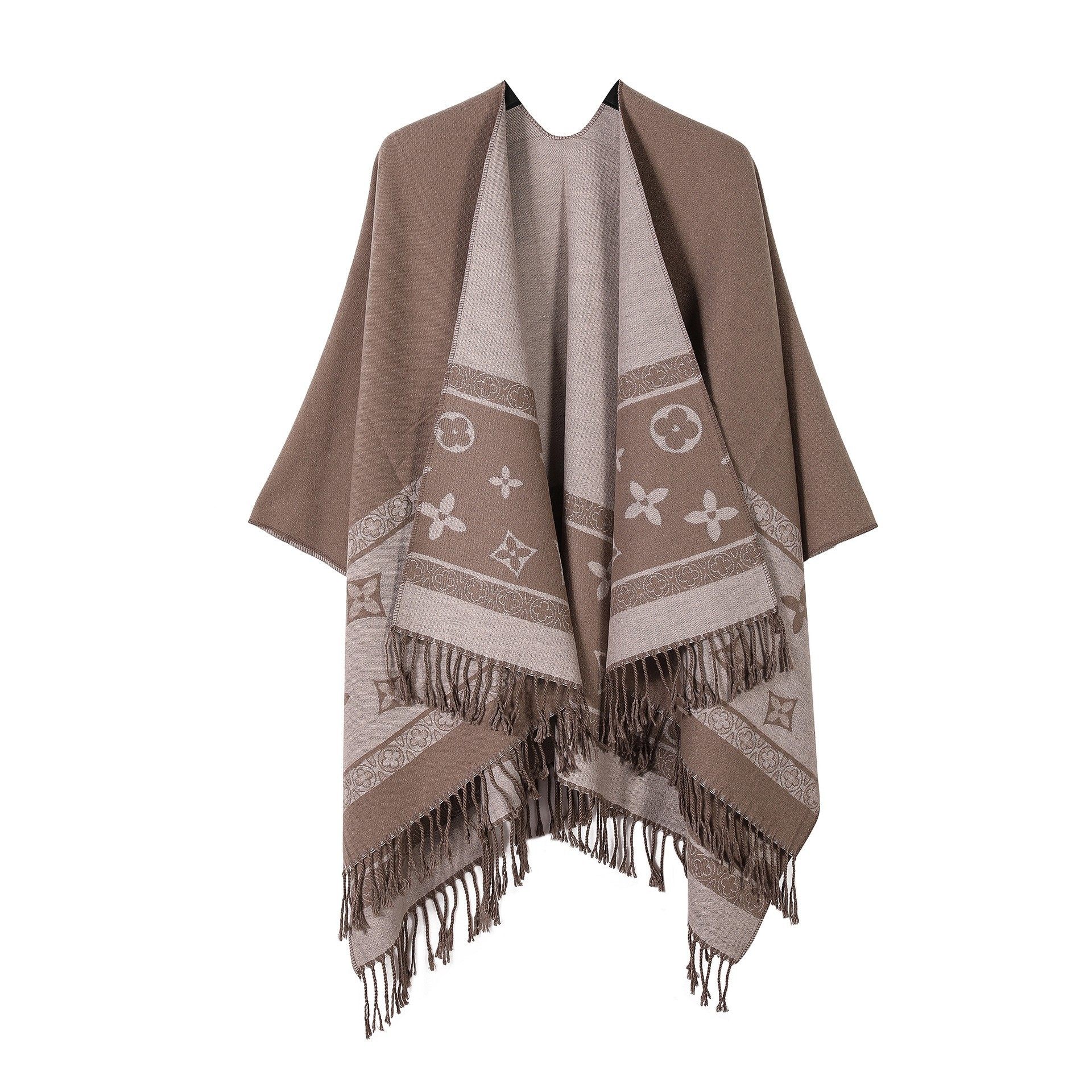 新款欧美时尚大牌披肩斗篷外搭女秋冬街头走秀气质保暖仿羊绒围巾