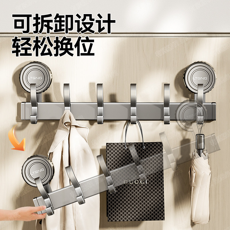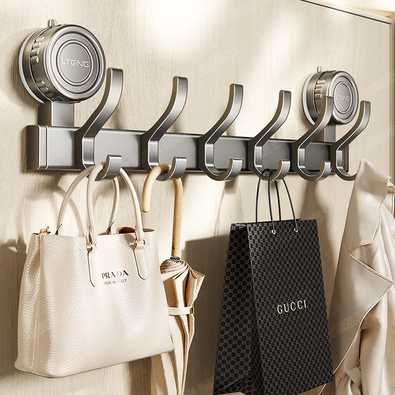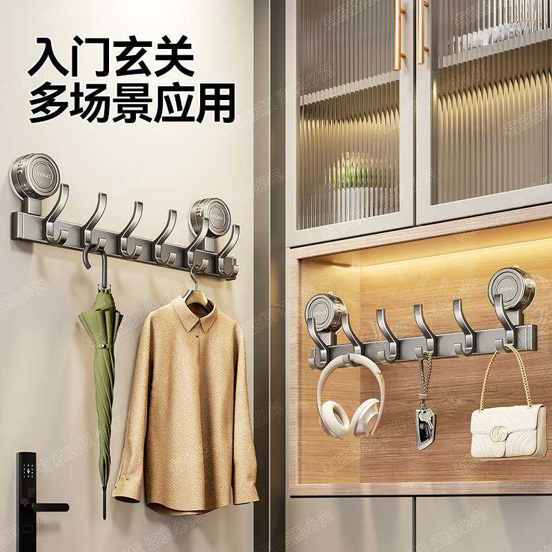 枪灰色吸盘挂钩免打孔强力粘胶一排挂衣架墙上壁挂入户门后挂衣钩