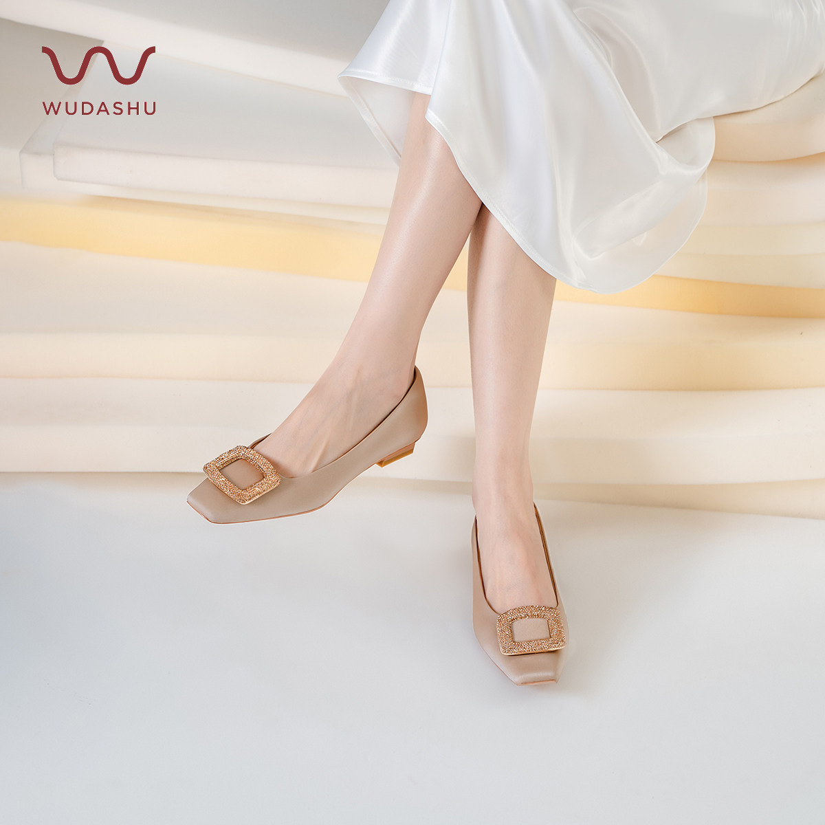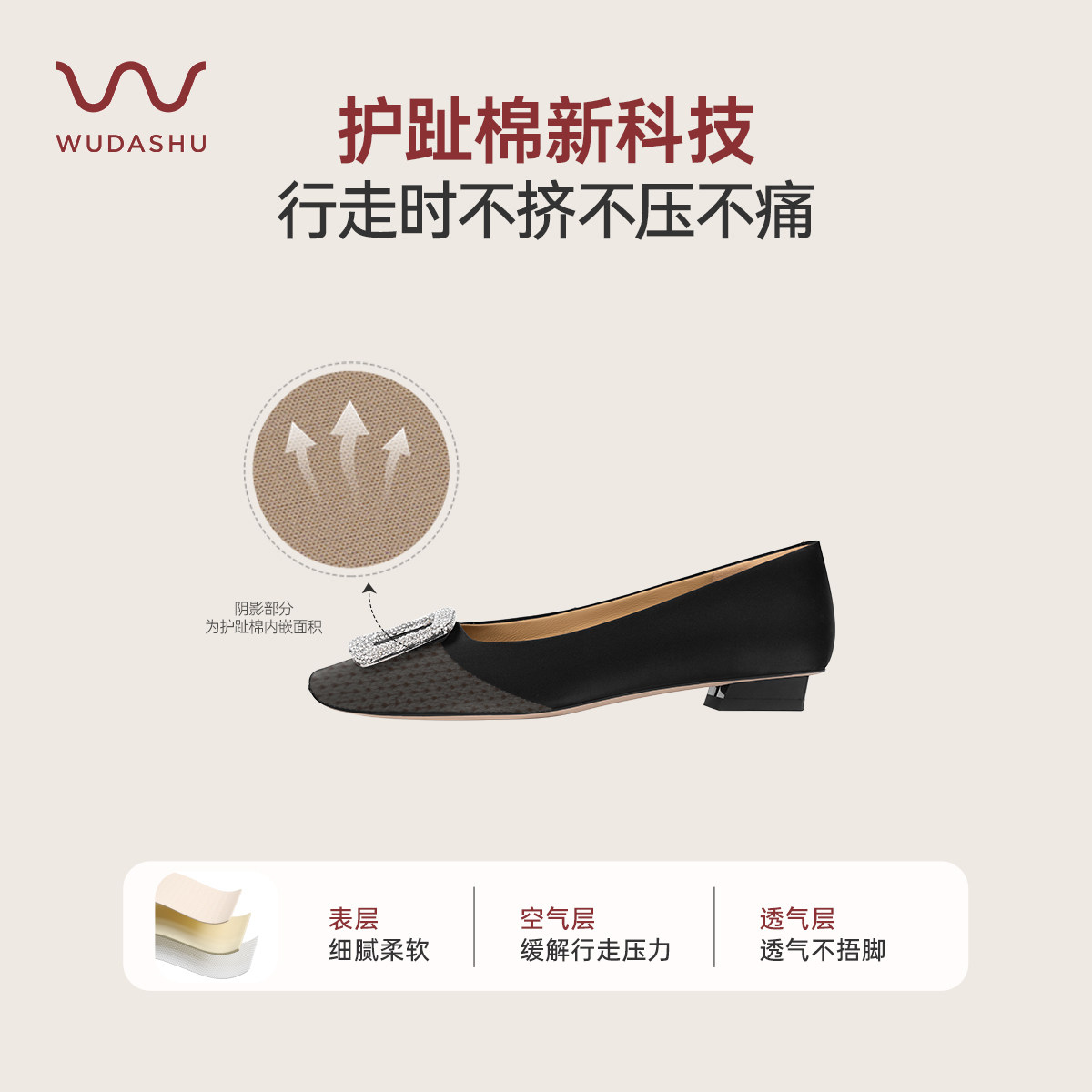 吴大叔2025秋冬新款经典水钻方扣软单鞋舒适平底方头职业绒面女鞋