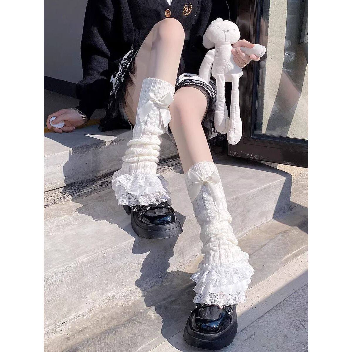 蕾丝花边小腿袜套女日系可爱原创中筒蝴蝶结堆堆袜子jk腿套配裙子