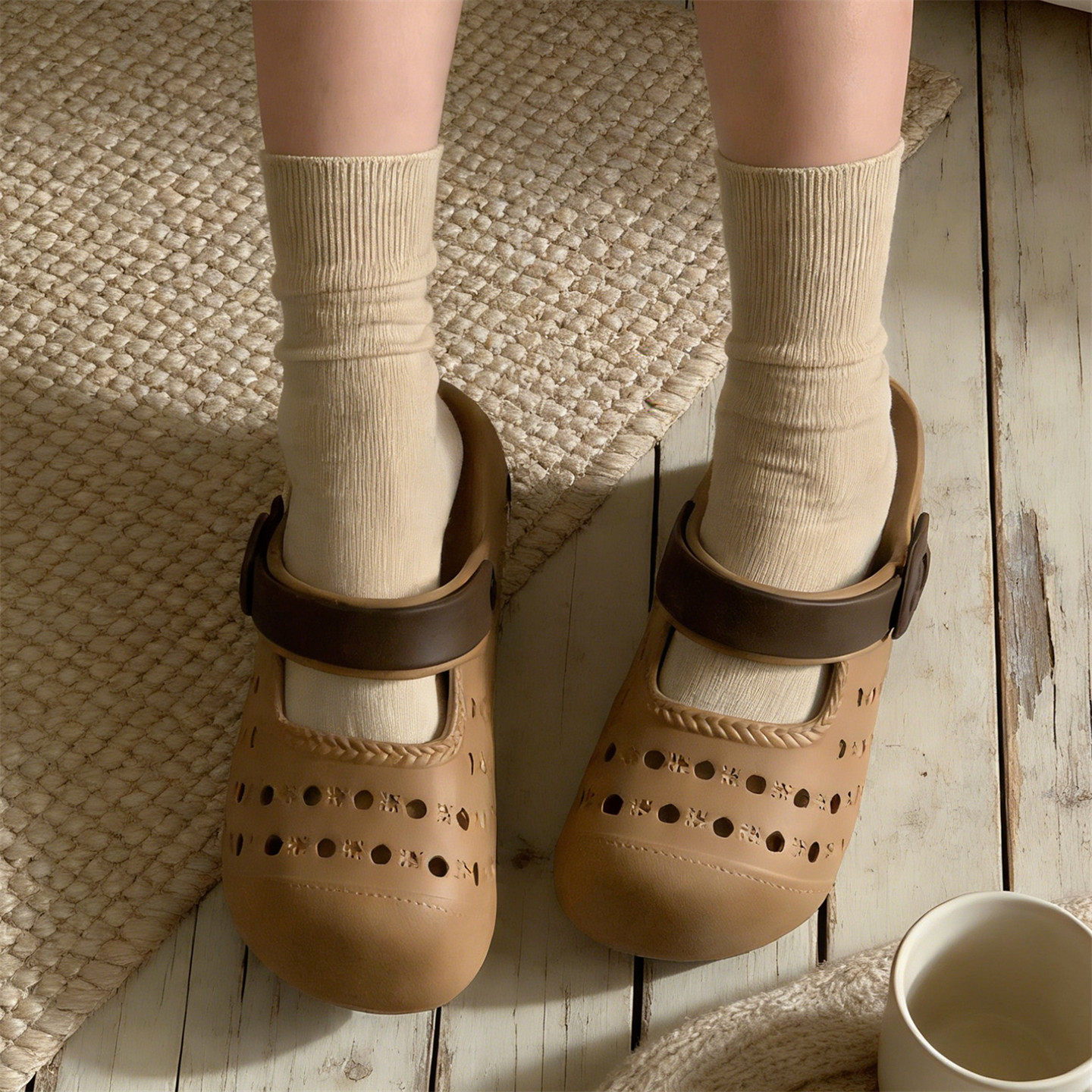 细细条 玛丽珍凉鞋女夏防滑足弓百搭沙滩度假洞洞鞋eva懒人包头拖