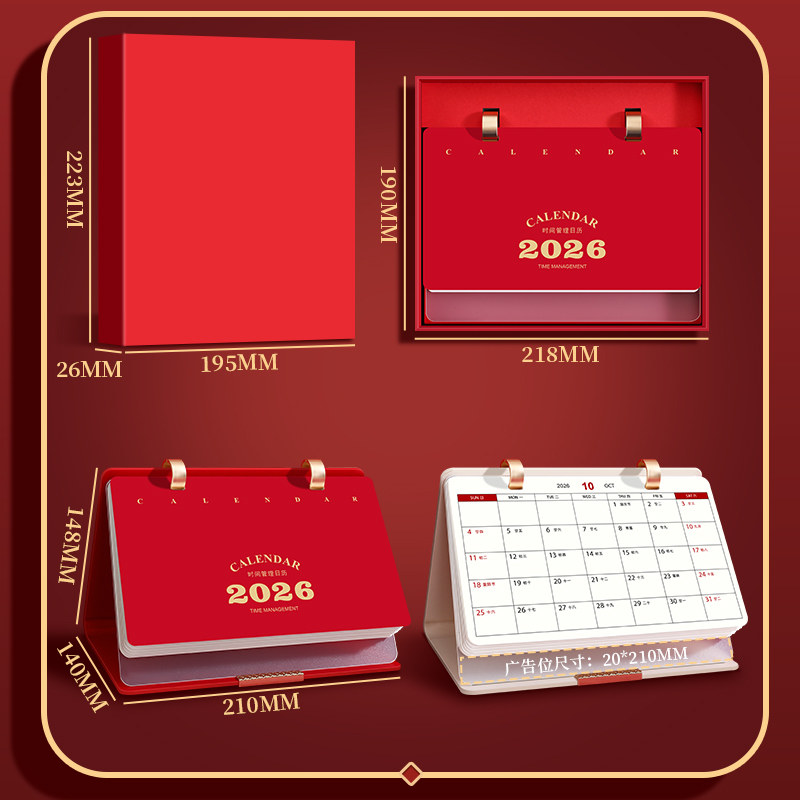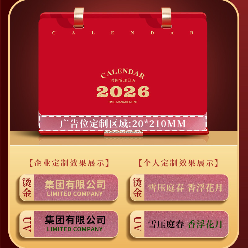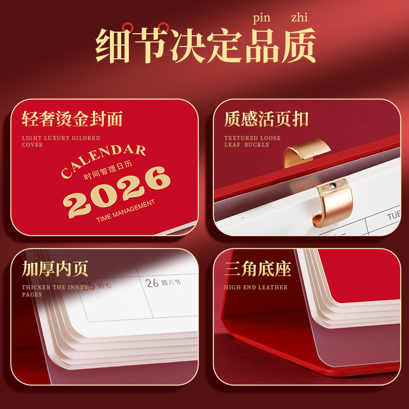台历2026年新款烫金定制皮面折叠创意礼盒装镂空皮质日历摆件铂金工艺月历定做中国风喜庆红色桌面定制广告位