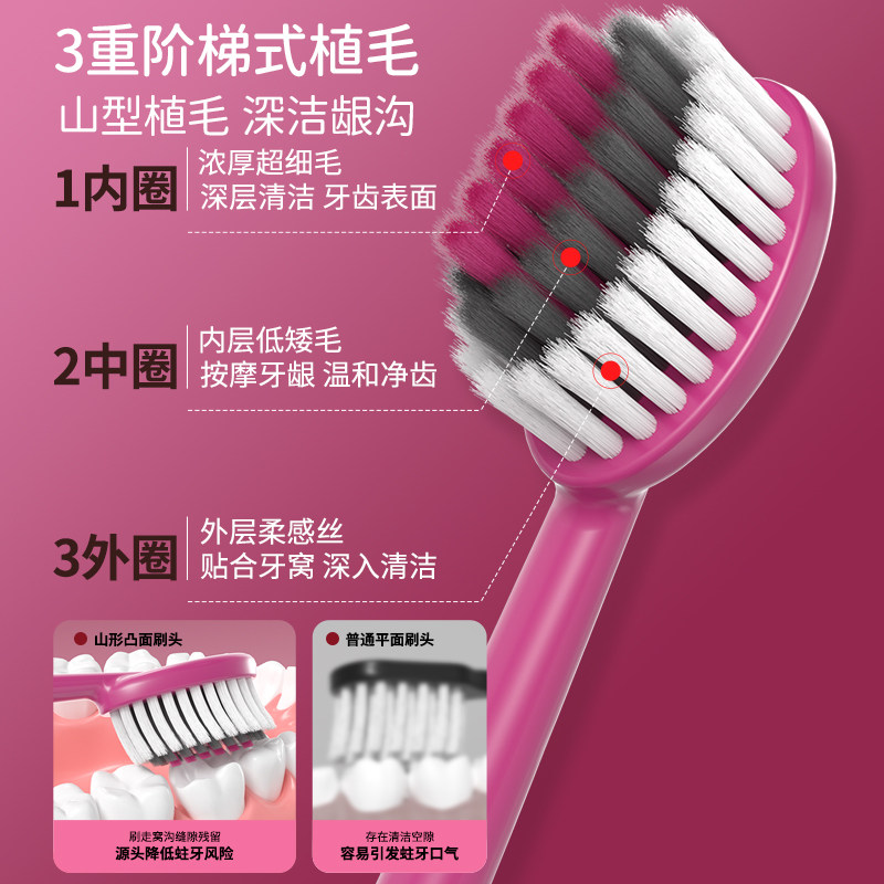 软毛牙刷成人宽头家庭装家用护龈清洁牙缝男女情侣款高颜值2只装