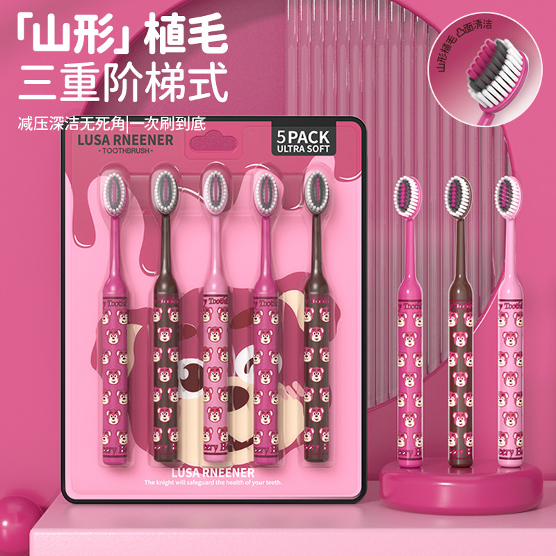 【5支装】樱你心动小熊山型凸面软毛牙刷家用深层清洁护龈家庭装