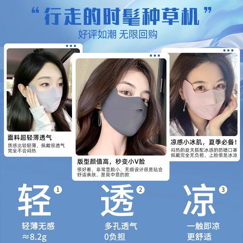 新款脸基尼全脸防晒面罩女夏季防紫外线冰丝轻薄透气护眼角口罩