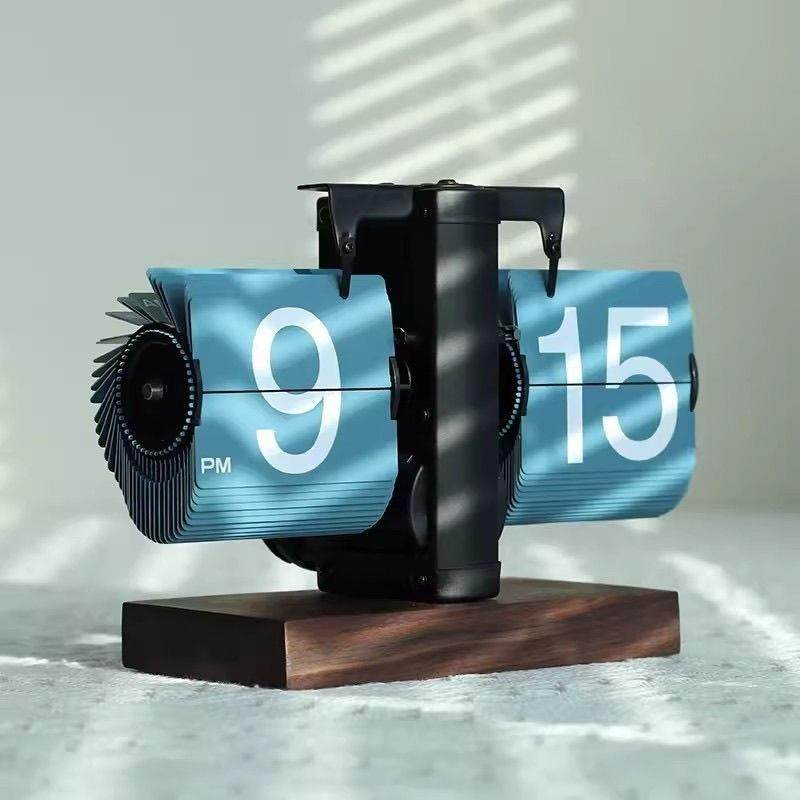 新款翻页钟自动复古机械钟表创意摆件台式座钟时钟客厅数字电子∑