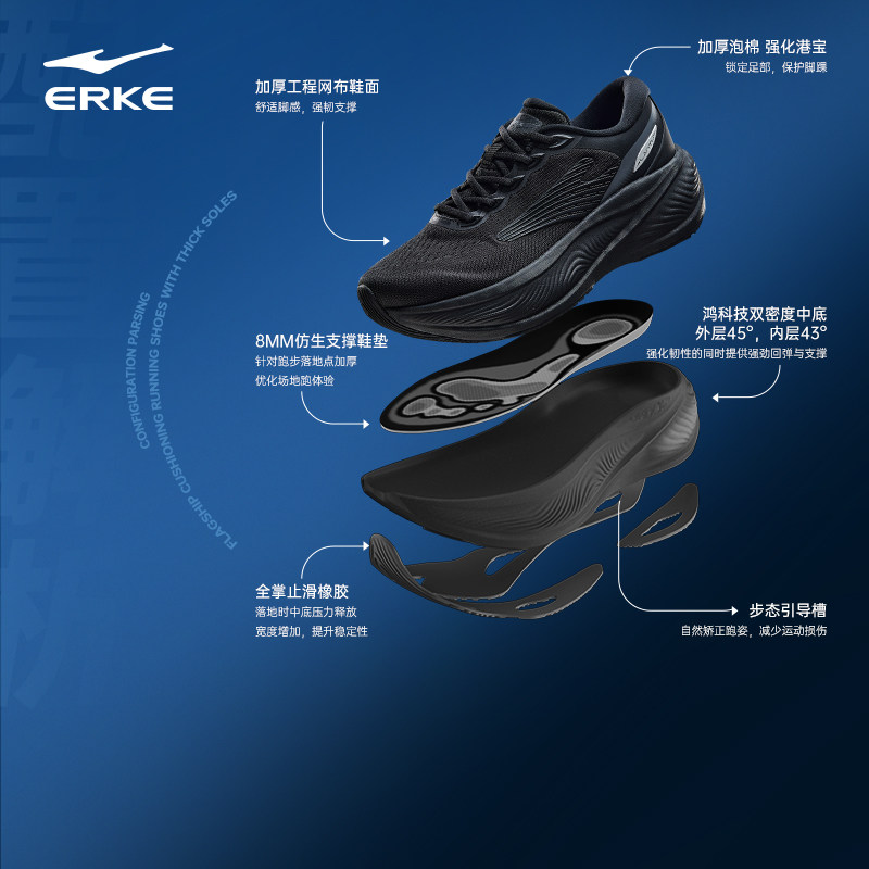 鸿星尔克揽途大体重男跑步鞋新款减震通勤运动鞋软底跑鞋宽楦男鞋