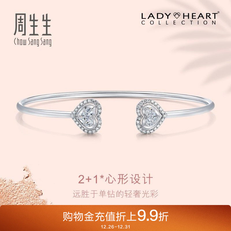 周生生Lady Heart钻石手镯18K白金爱心镯子89888K预订