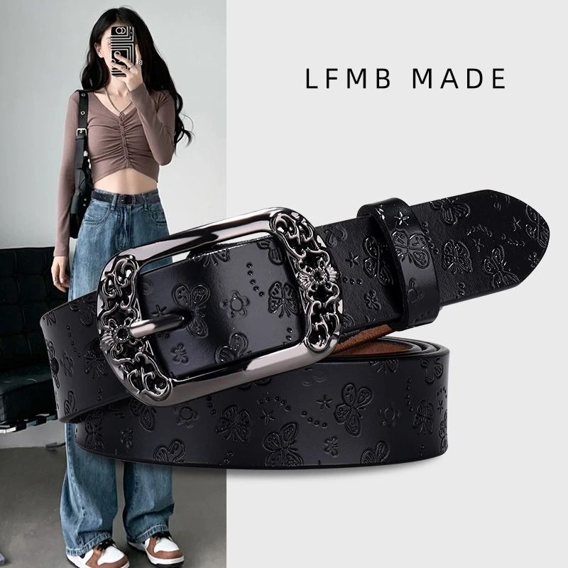 皮带女士2025新款配牛仔裤腰带真皮女式腰带时尚百搭黑色装饰女款
