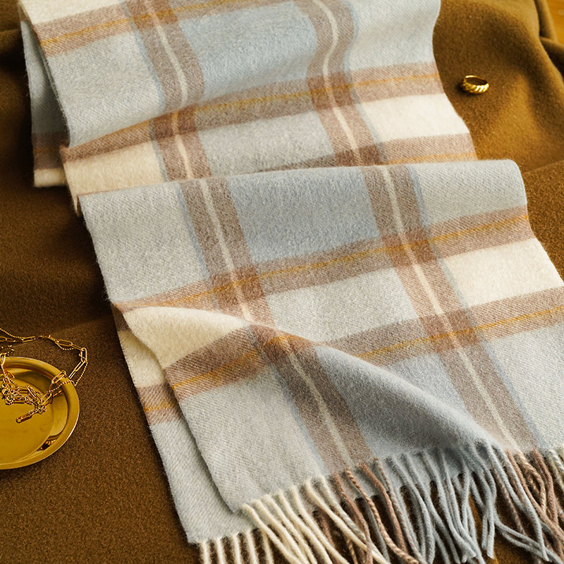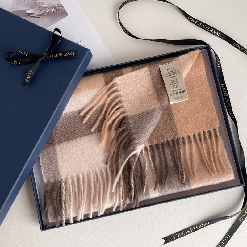 爆款英伦风100%羊毛格子围巾冬季保暖情侣围脖生日礼物轻奢格纹