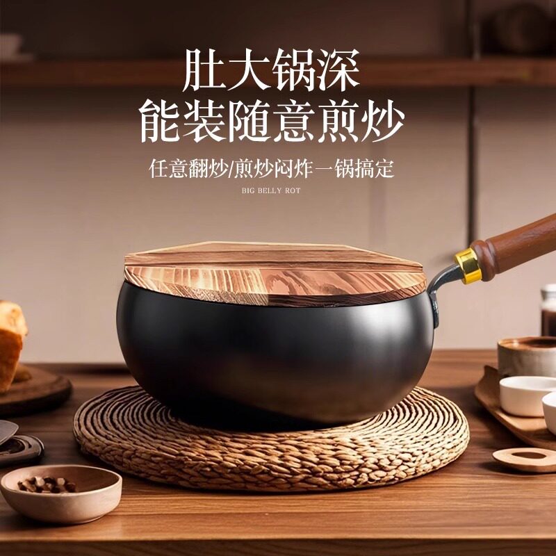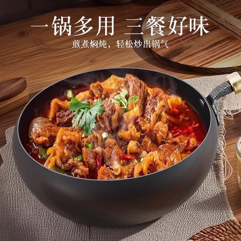 章丘大肚铁锅加深手工家用无涂层不粘锅电磁炉燃气灶平底熟铁炒锅