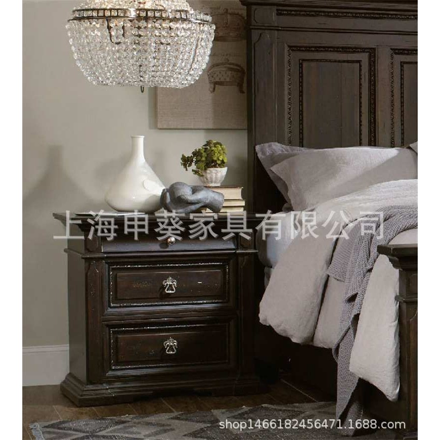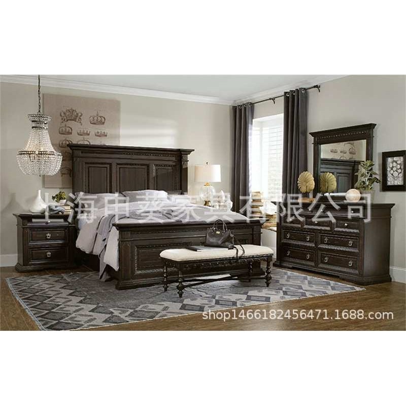 美式实木轻奢单双人床储物收纳床头柜卧室家具组合酒店别墅样板房