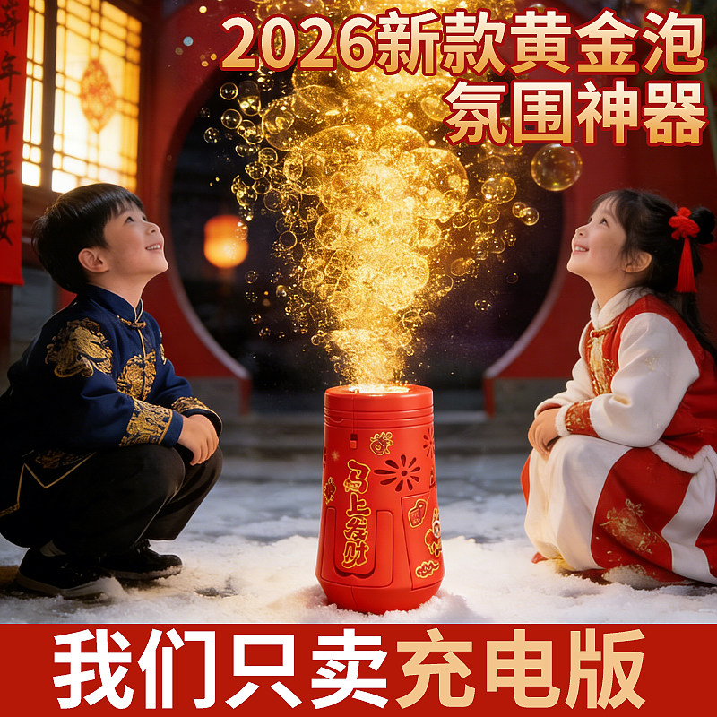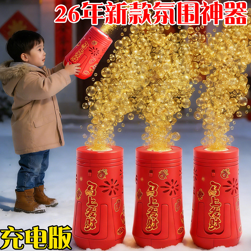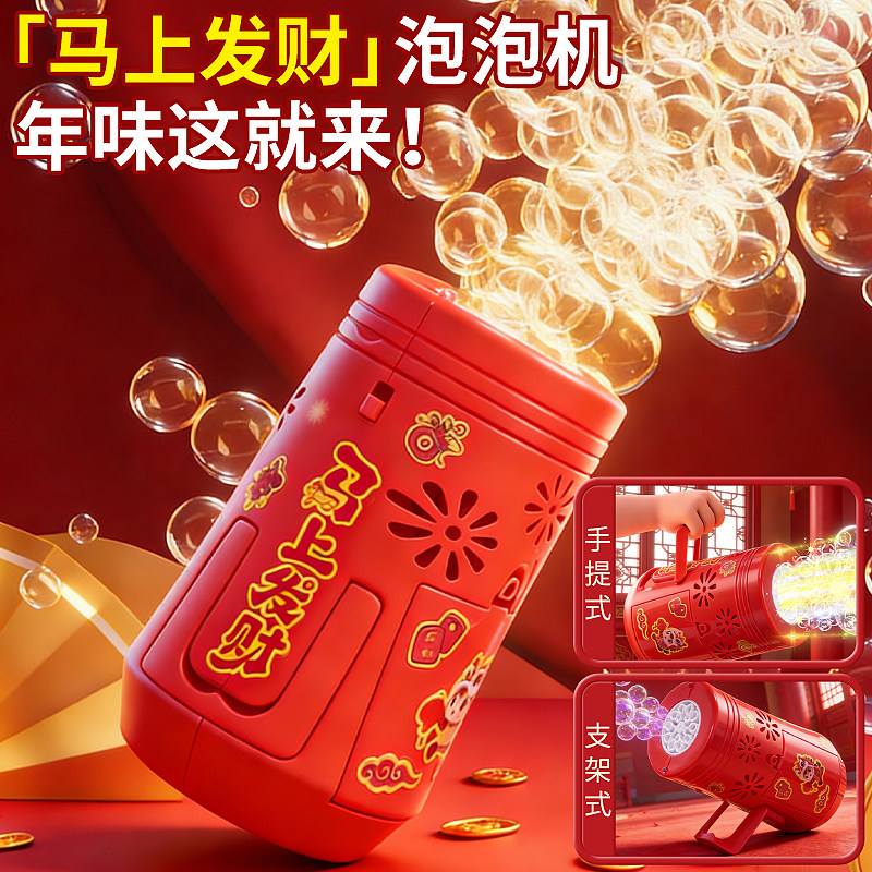 乐乐鱼2026新款电动新年烟花泡泡机醒舞狮灯笼儿童玩具手持加特林