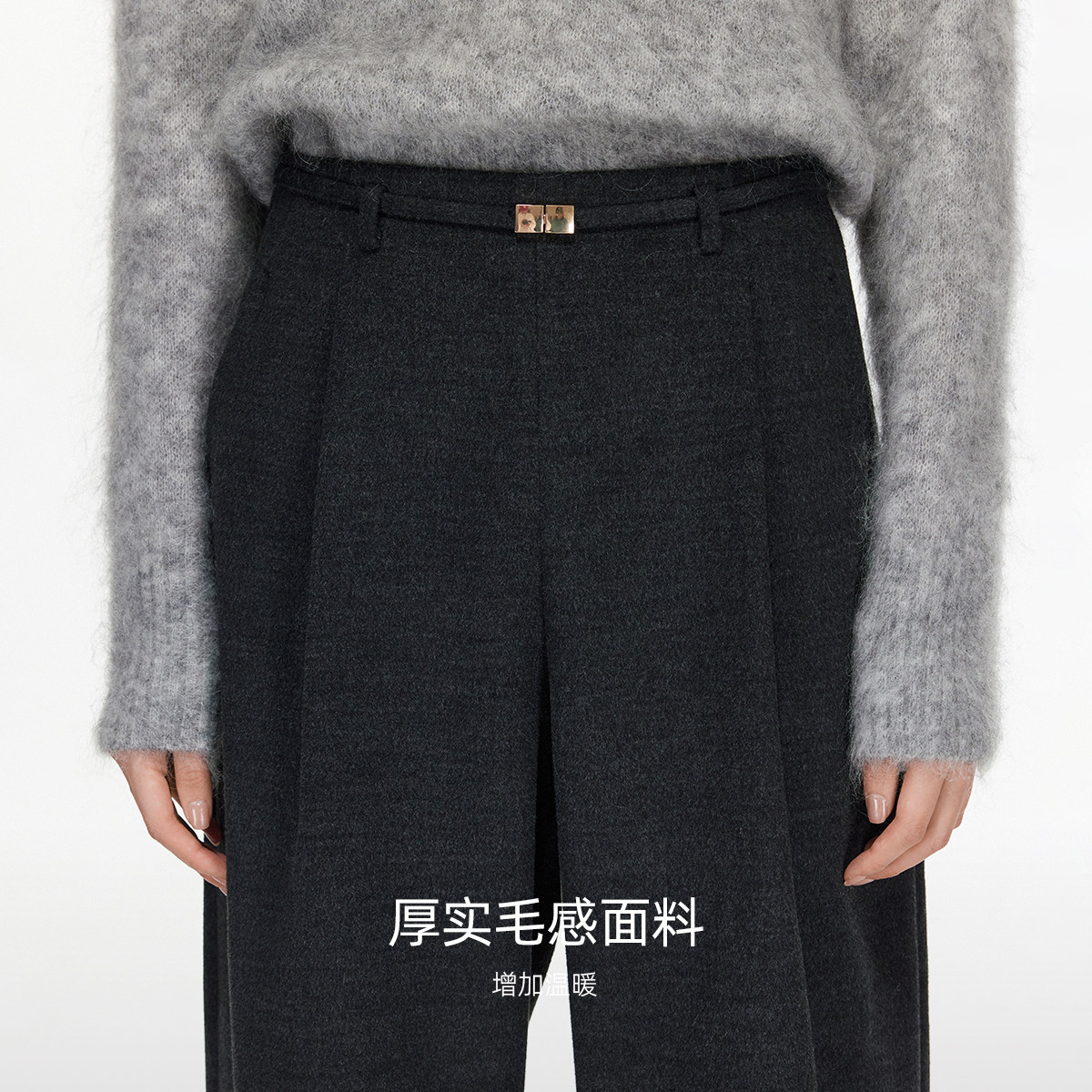 香蕉版型长裤,不挑腿型。厚实毛感面料