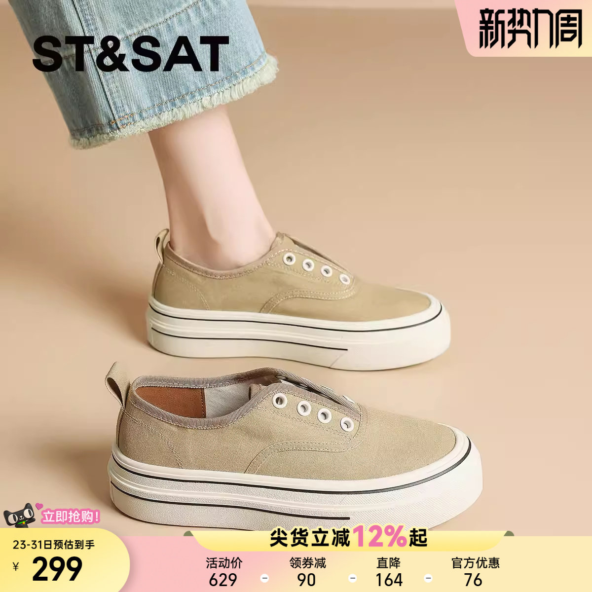 星期六爆款厚底帆布鞋女2025夏季新款百搭透气一脚蹬增高休闲板鞋