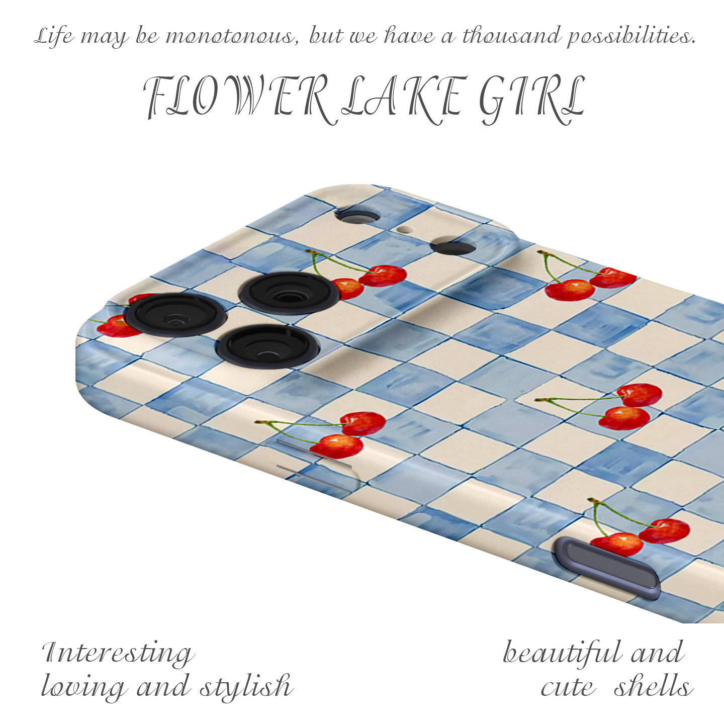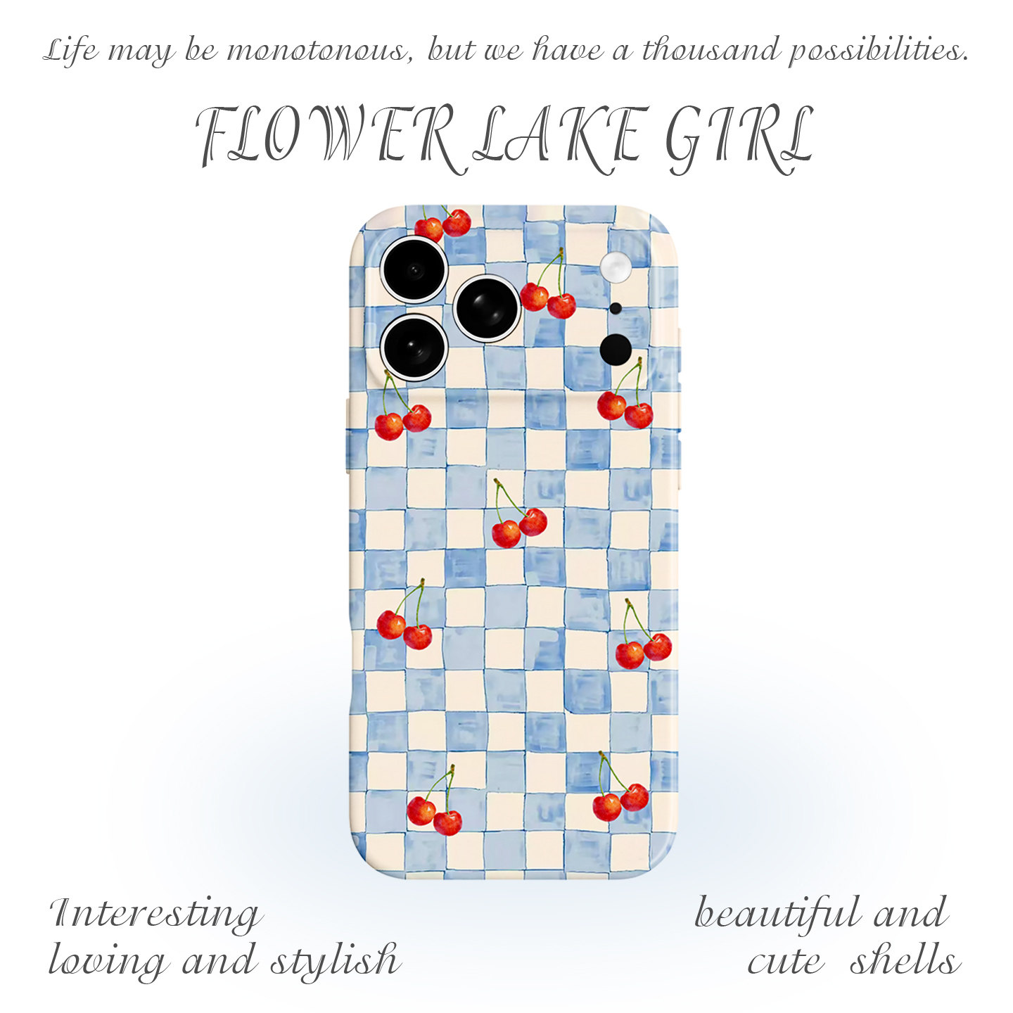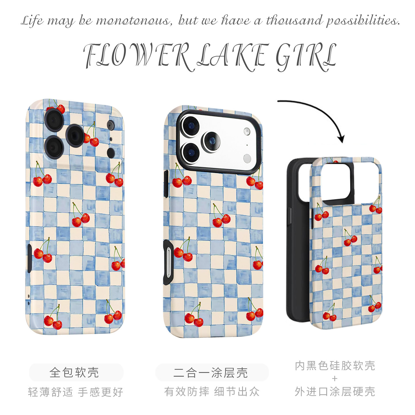 【樱桃秘事】小清新蓝格子适用iPhone16/15promax手机壳华为P70Pro苹果13OPPOreon9软vivoS15一加ACE3红米K80