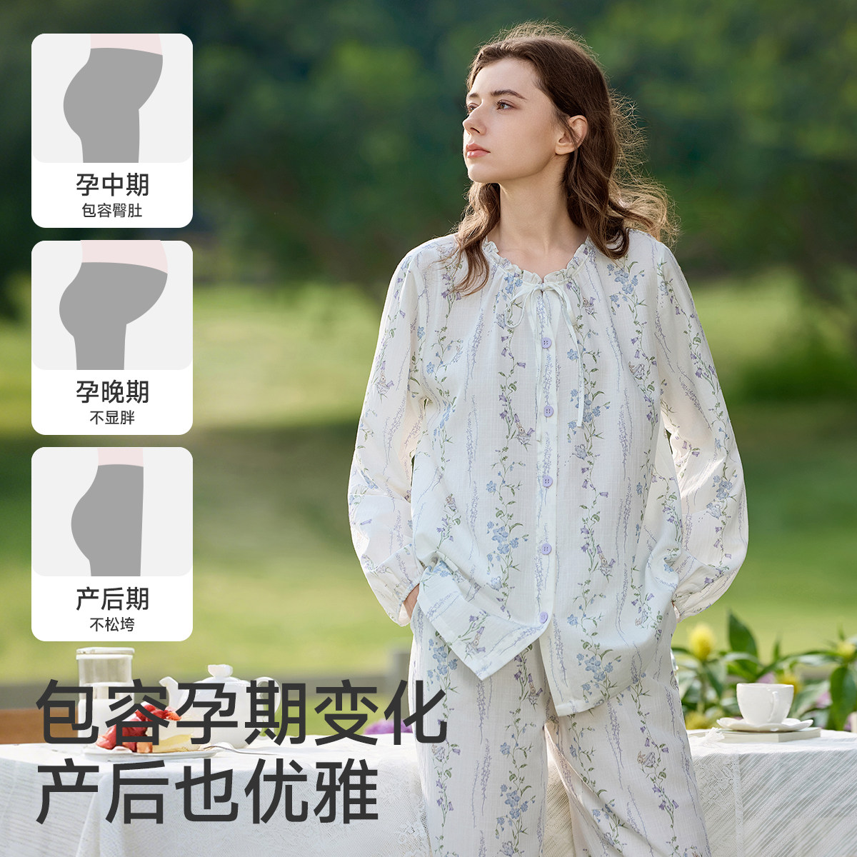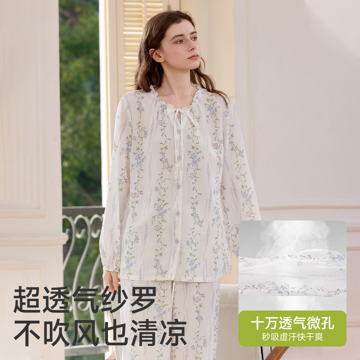十月结晶风悦花信月子服纯棉家居服套装纱罗10A抗菌超透气春季款