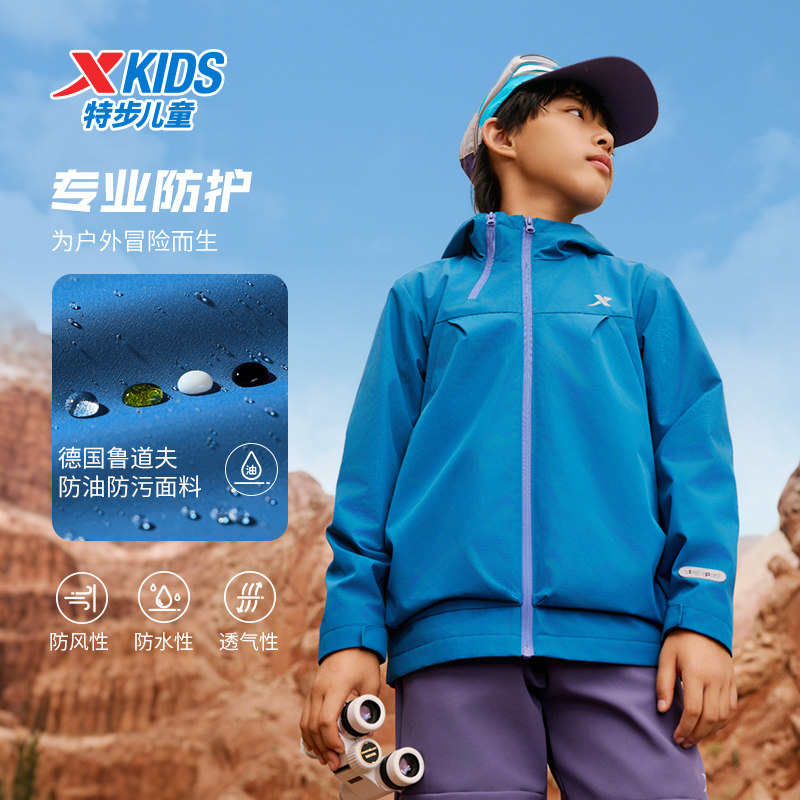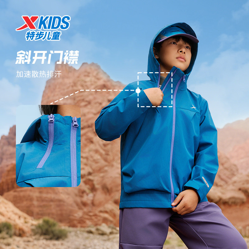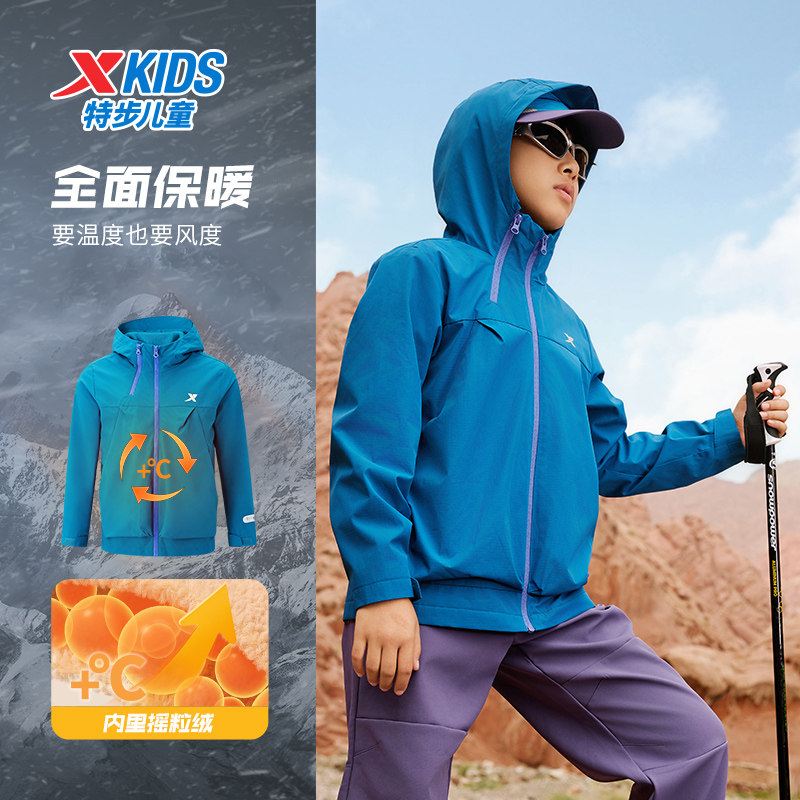 特步童装秋冬季新款男童女童中大童运动休闲上衣儿童加绒保暖风衣