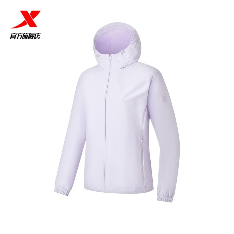 特步外套女士2026年春季新款运动上衣防风连帽风衣女974128160380