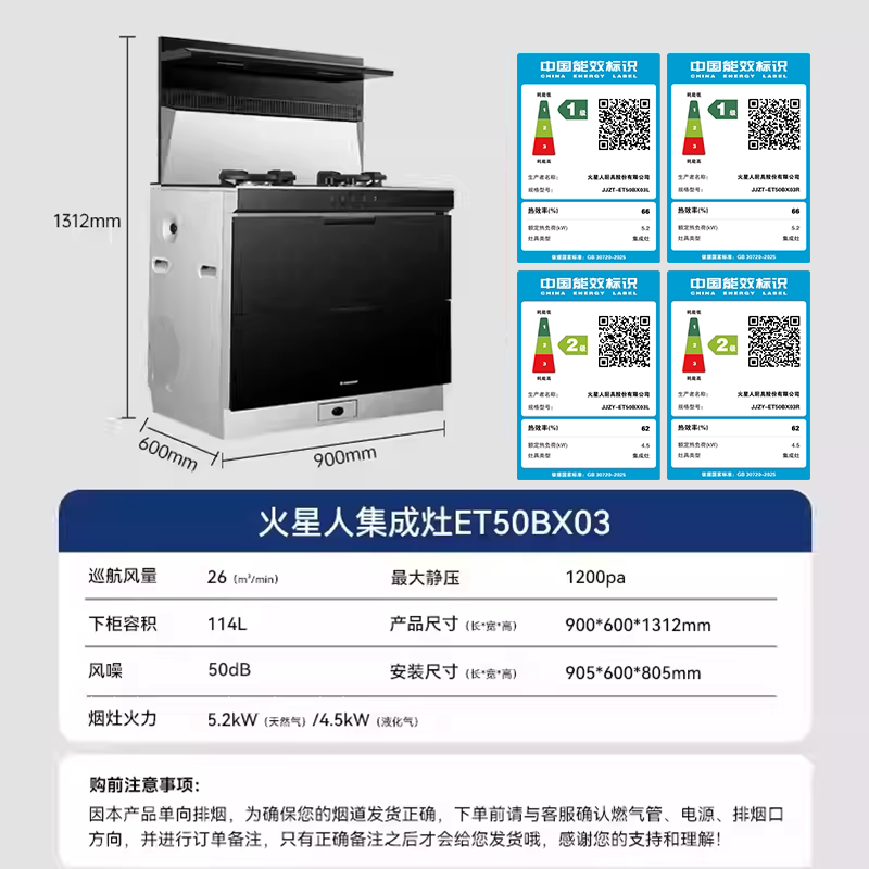 火星人ET50BX03流光系列集成灶家用一体灶台厨房家电消毒柜油烟机