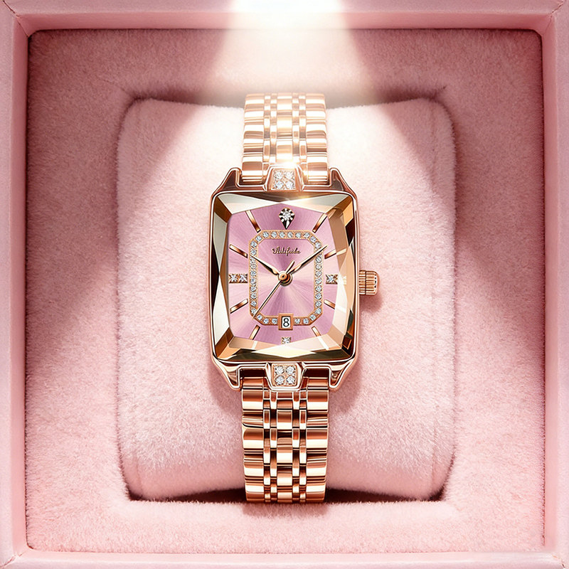时尚潮流小方块女士手表石英小香风满天星女款日历防水高配版百搭