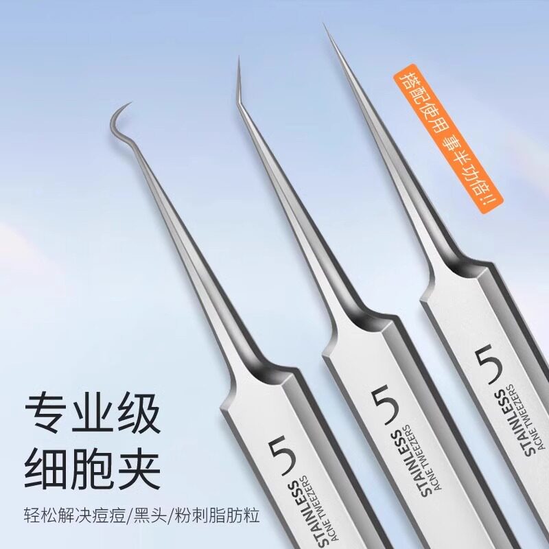 新款无缝级细胞夹黑头超细镊子美容院专用粉刺针痘痘针清洁闭口针