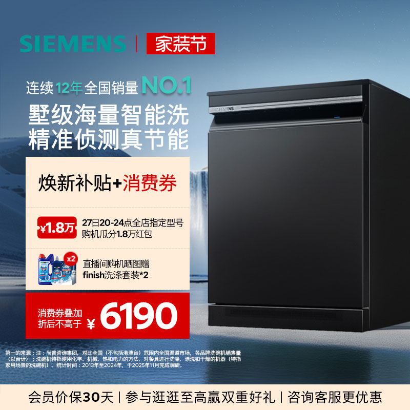 新品|西门子智净魔方17套独立嵌入式洗碗机消毒除菌AI省水HB25