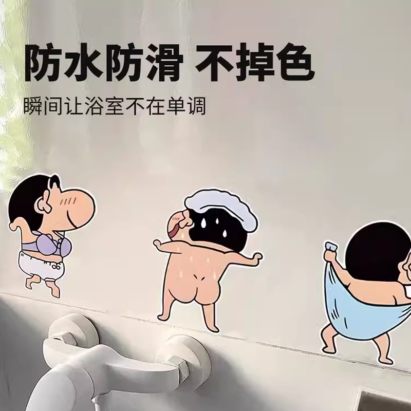 蜡笔小新卡通贴纸墙贴浴室马桶贴厕所瓷砖居家贴画卫生间防水贴纸