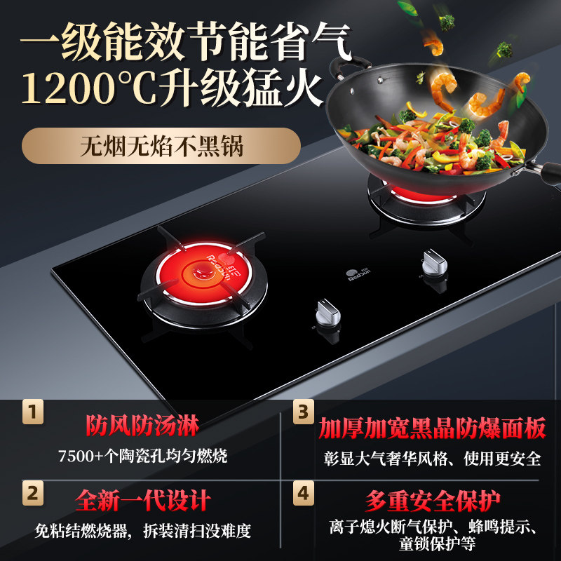 红日红外线灶嵌入式家用节能液化气天然气煤气双灶猛火灶具308BP