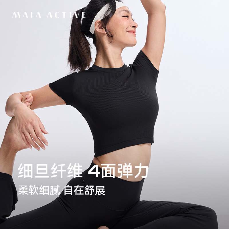 3D一体织修身无缝肌理感运动休闲短袖衫瑜伽T恤上衣女 MAIAACTIVE