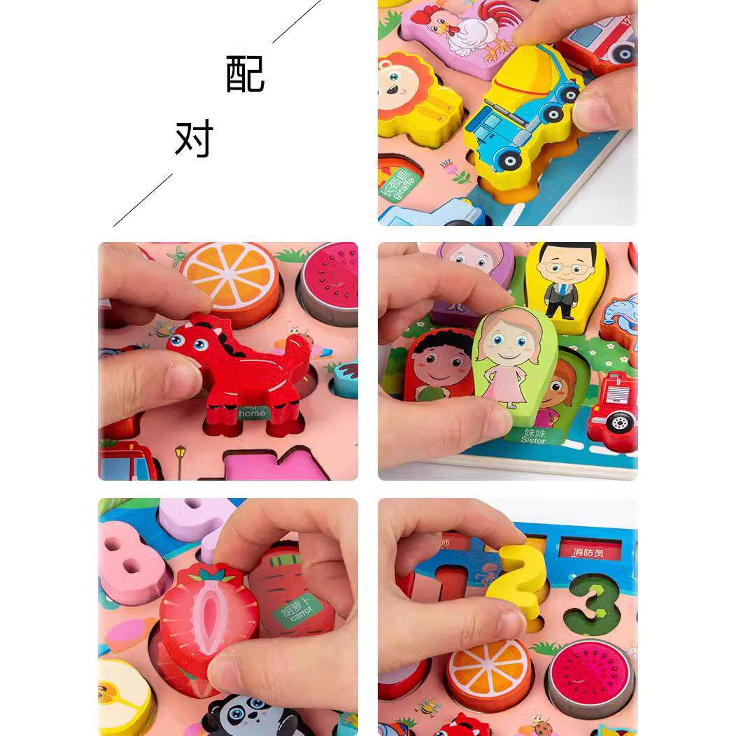 多功能对数板儿童早教形状认知配对拼图数字拼板积木钓鱼玩具