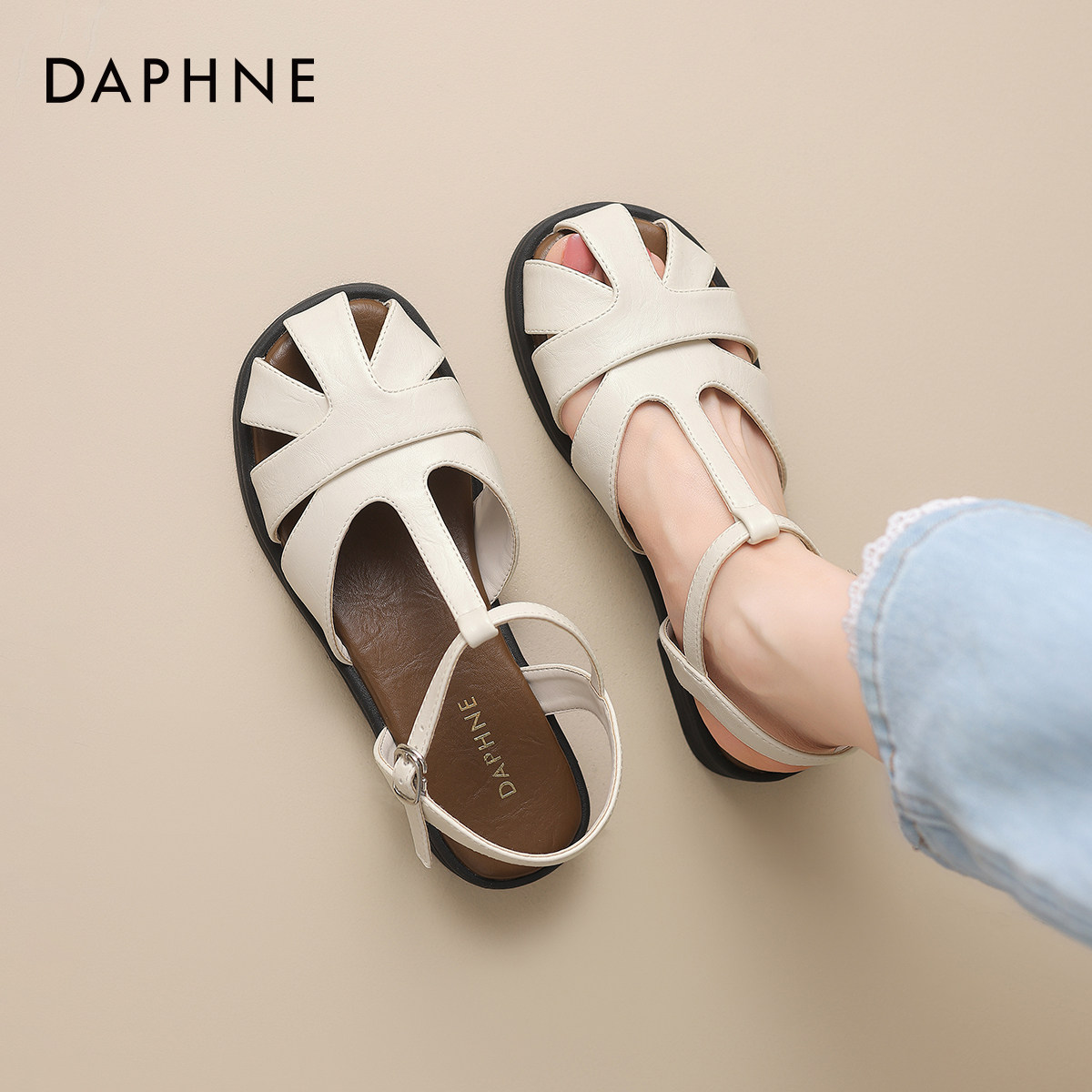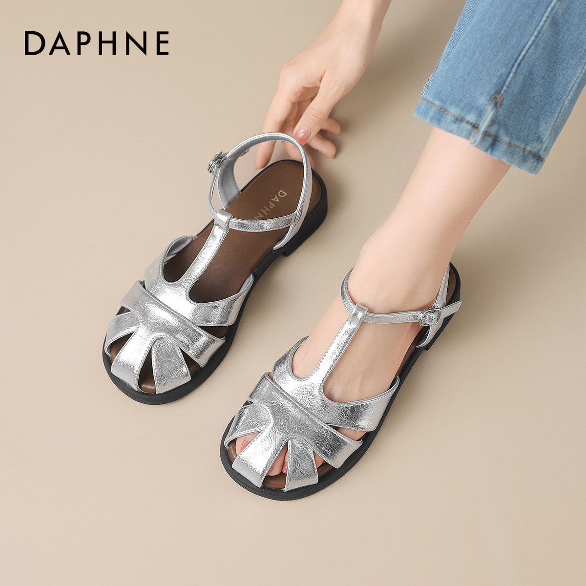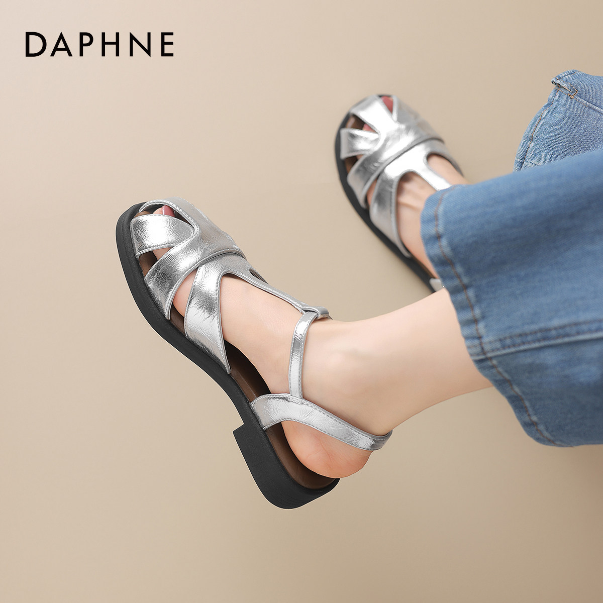 达芙妮包头罗马凉鞋女款2026新款夏季软底编织镂空女士平底凉拖鞋