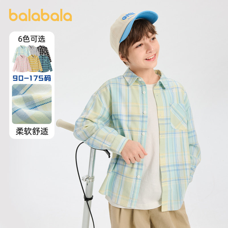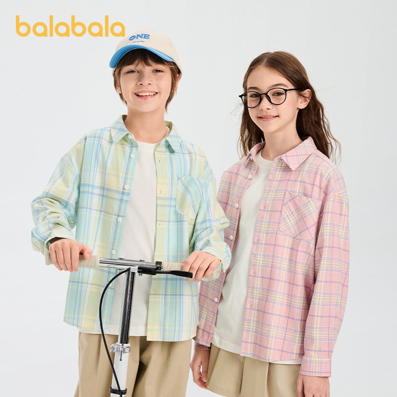 巴拉巴拉儿童格子衬衫男童女童衬衣春季2026新款童装大童宝宝上衣