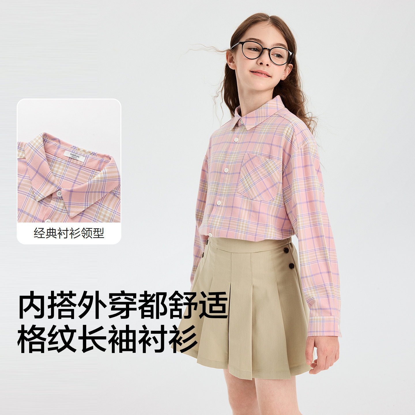 巴拉巴拉童装儿童长袖衬衫宝宝女童男童2026新款春装宽松格纹百搭