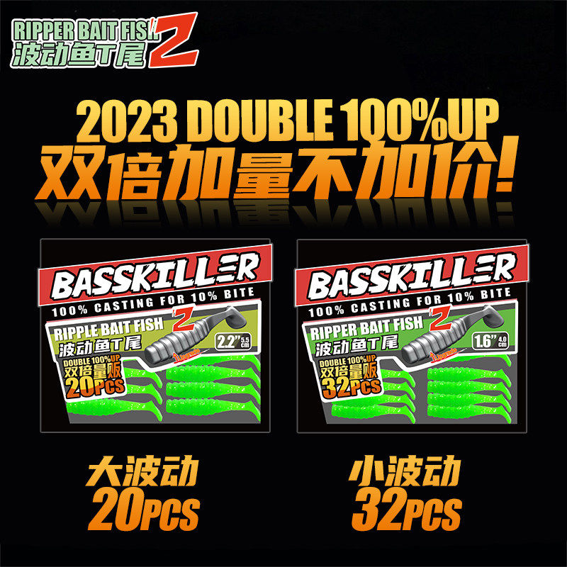 Basskiller段公子波动T尾鱼2代路亚饵微物根钓仿生软铒鱼饵黑坑