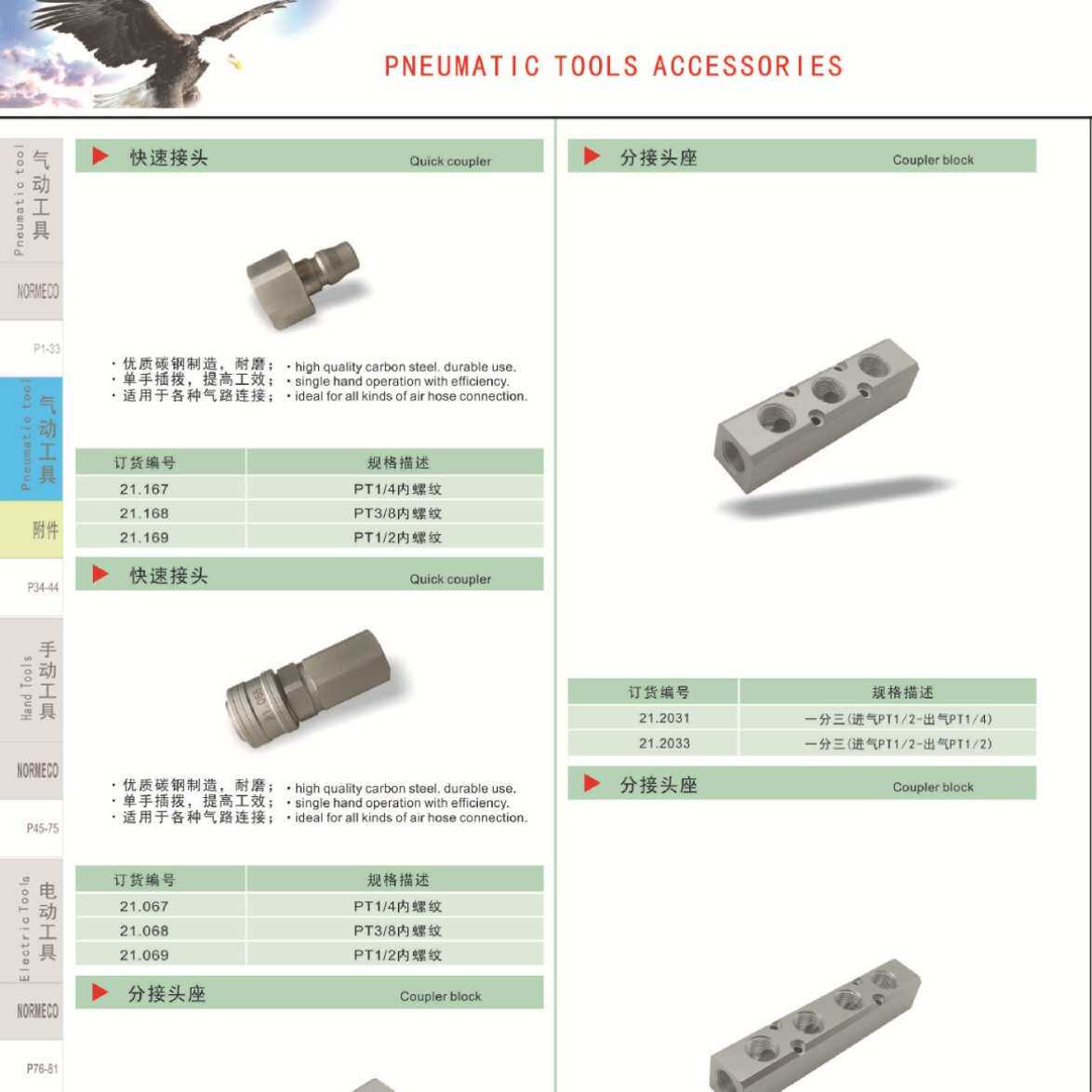 诺麦柯Normeco气管快速接头公母接头适合大扭力防漏气动工具