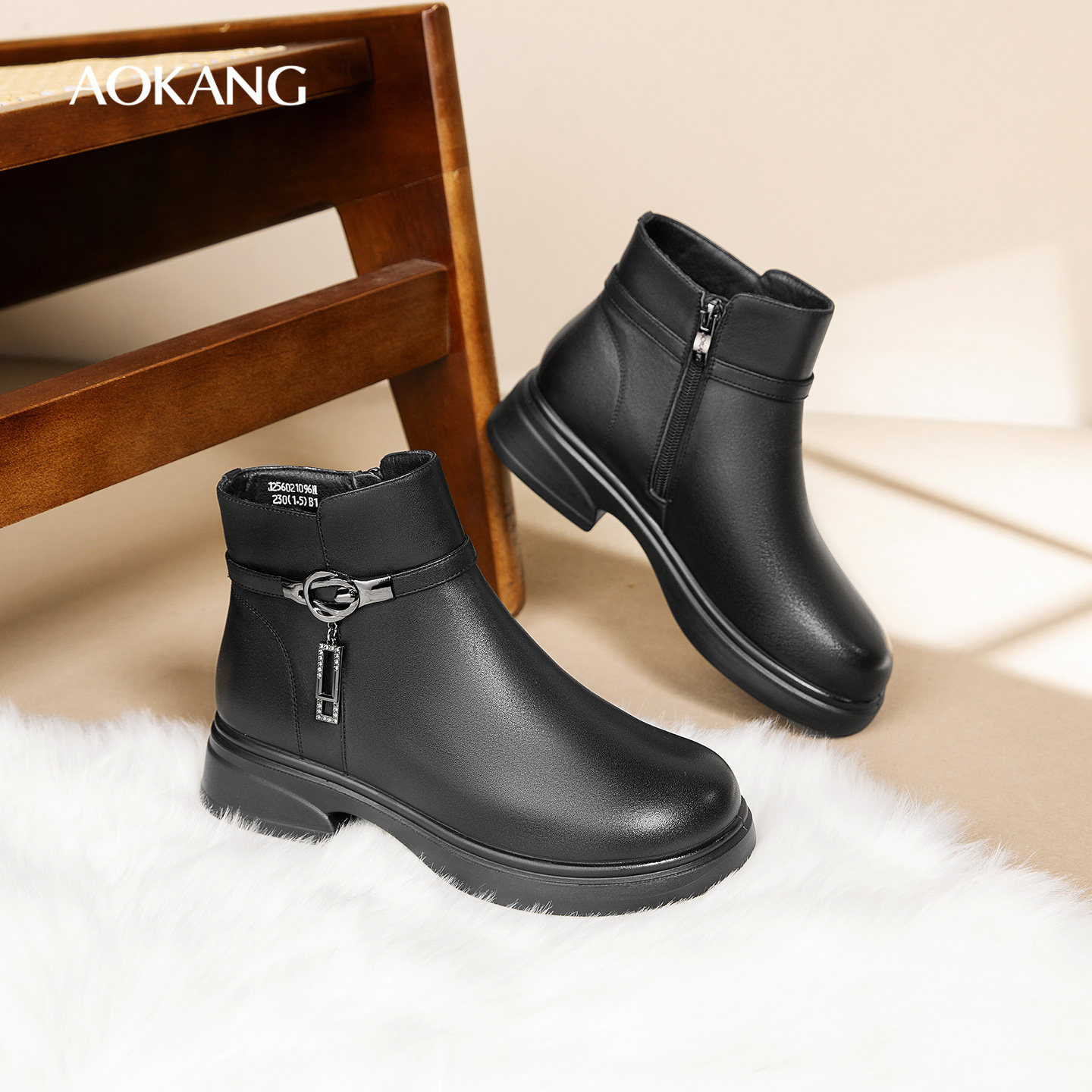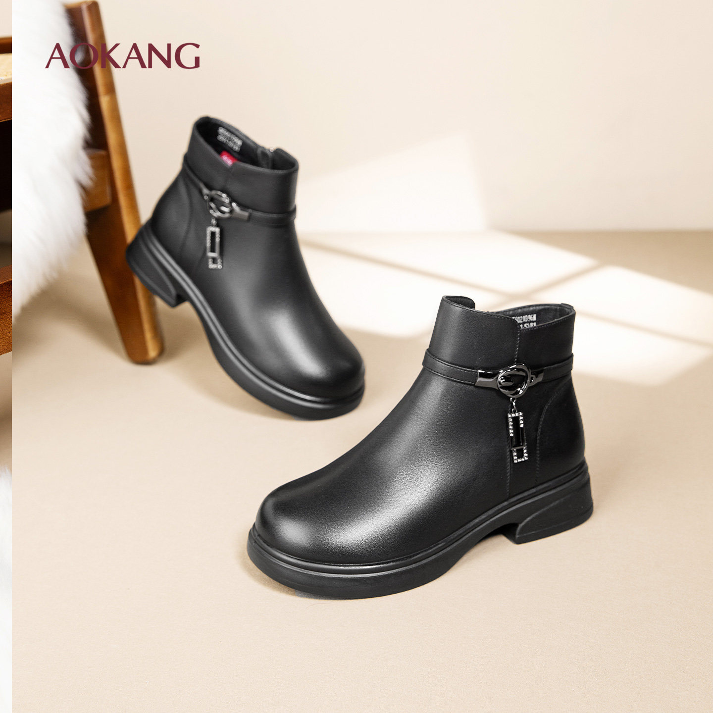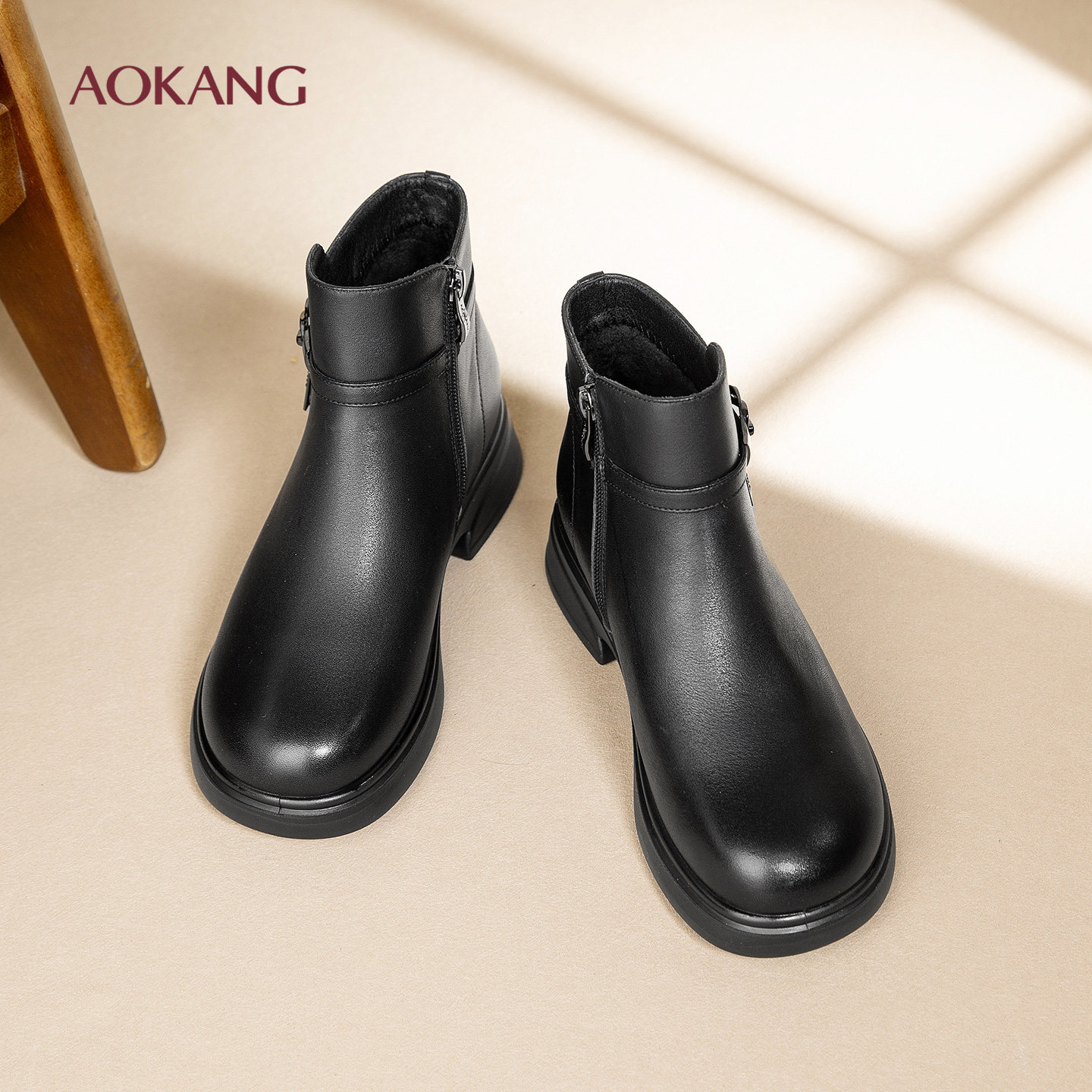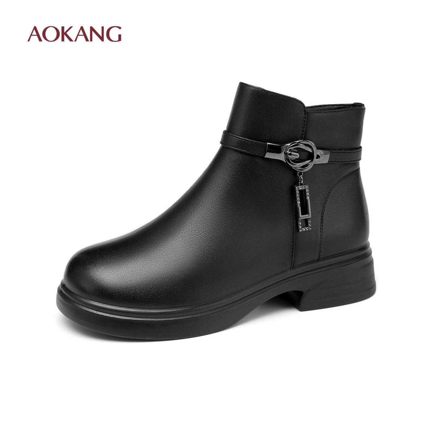 奥康 女鞋2025冬季新款时尚加绒女靴粗跟防滑保暖妈妈棉鞋N