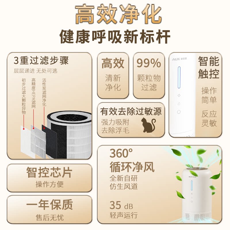 奥克斯空气净化器家用除甲醛桌面小型净化机办公室除二手烟味异味