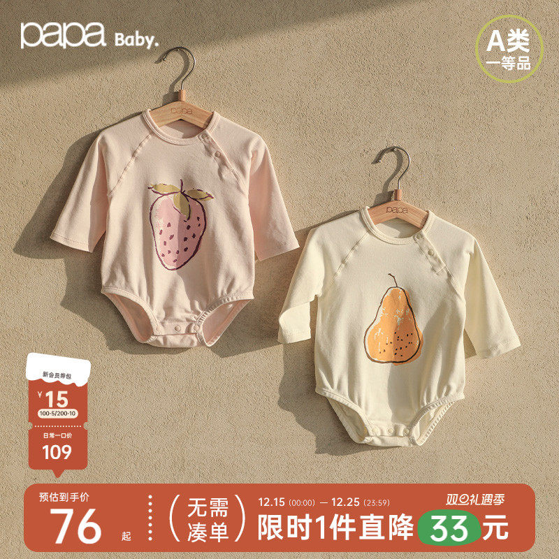 【新品】papa爬爬春季婴儿连体衣男女宝双面布包屁衣纯棉亲肤