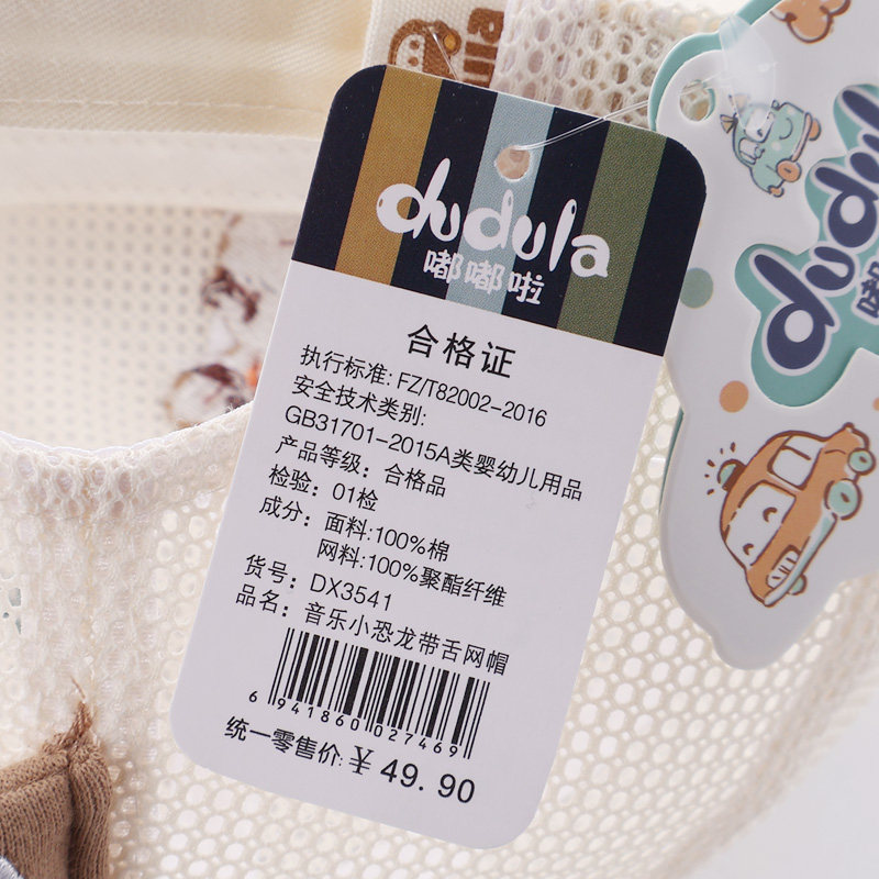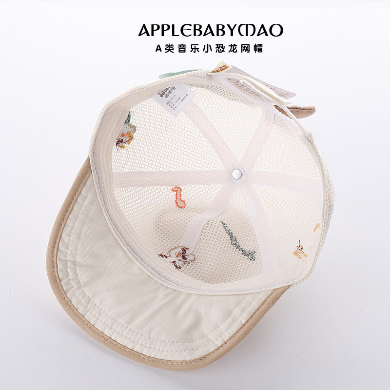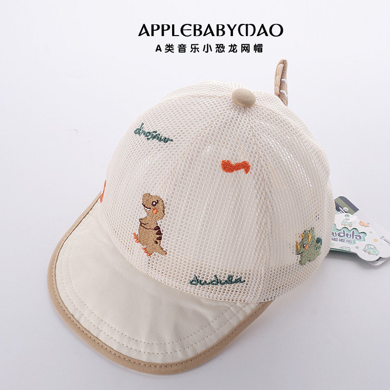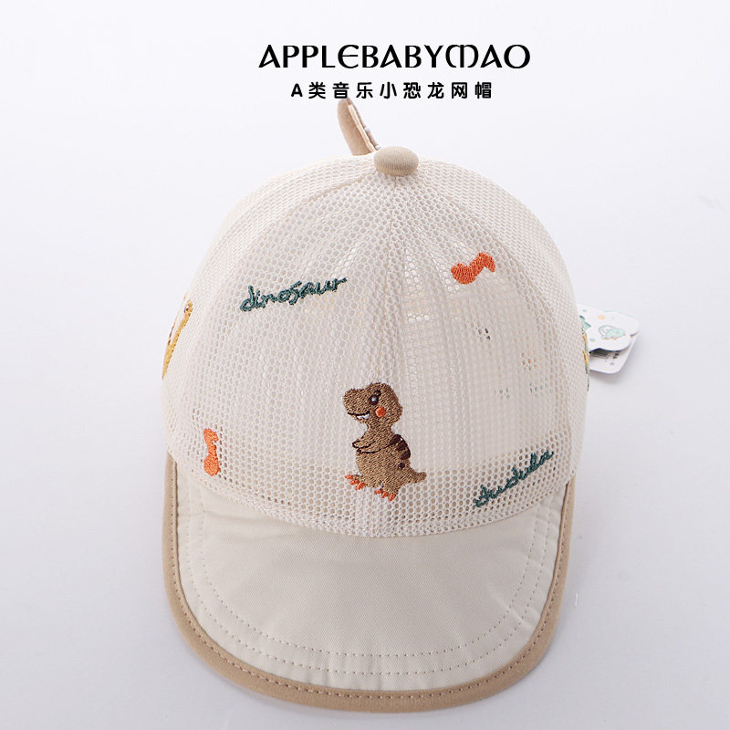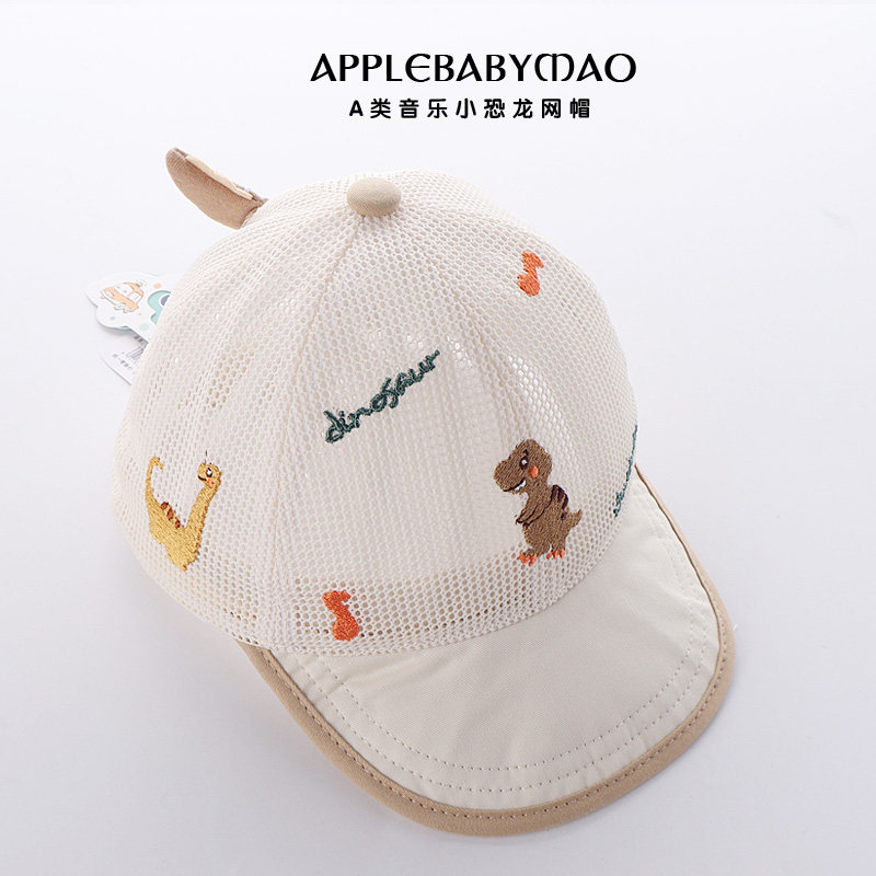 嘟嘟啦夏季男宝宝帽子可爱卡通恐龙鸭舌帽透气全网眼防晒遮阳凉帽