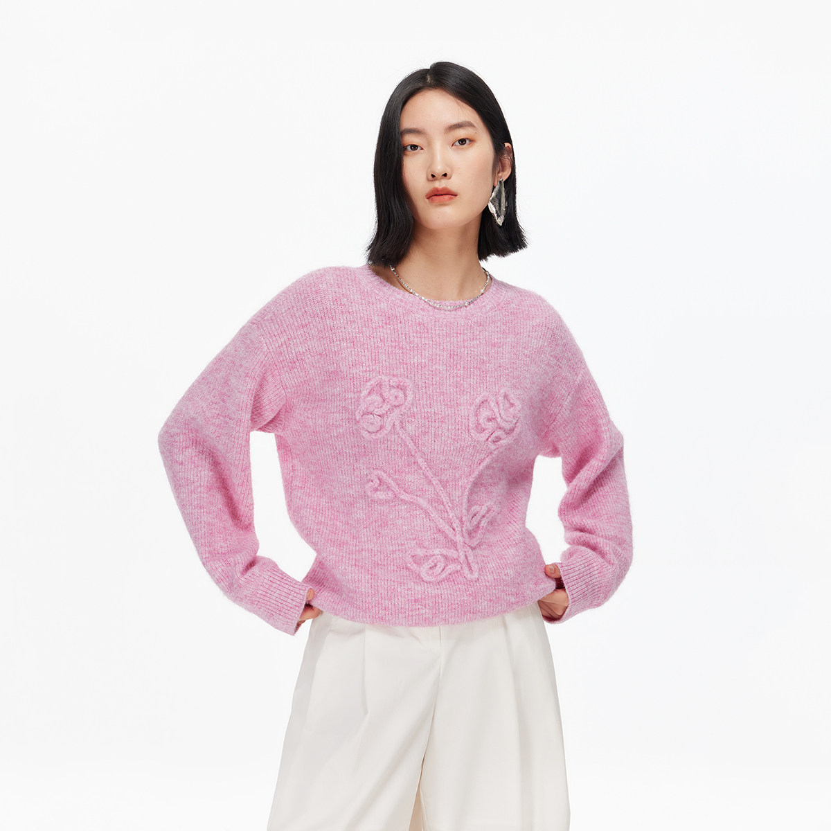 Vero Moda毛衣女2025秋冬新款含绵羊毛立体花朵圆领上衣325325001