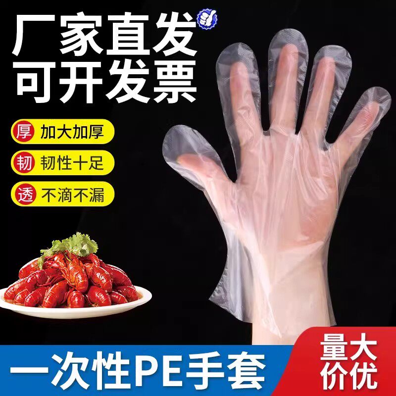 一次性手套加厚款透明薄膜手套PE食品级烘焙餐饮外卖家务手膜批发