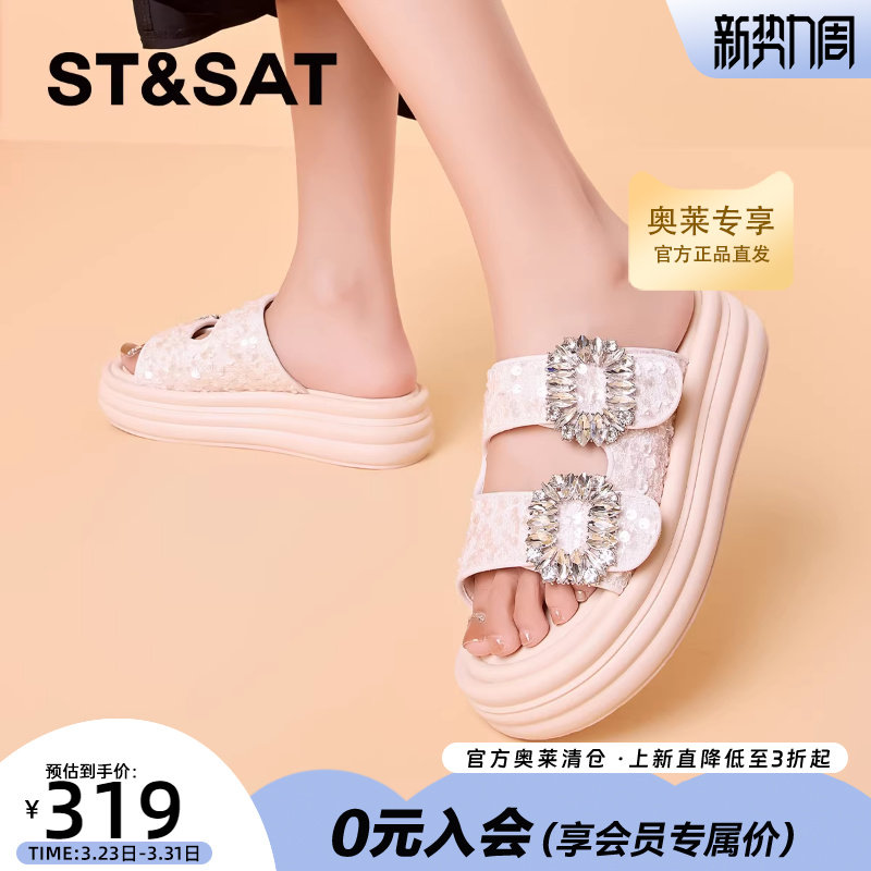 星期六水晶风格时尚厚底增高凉鞋夏季新款百搭舒适拖鞋女鞋