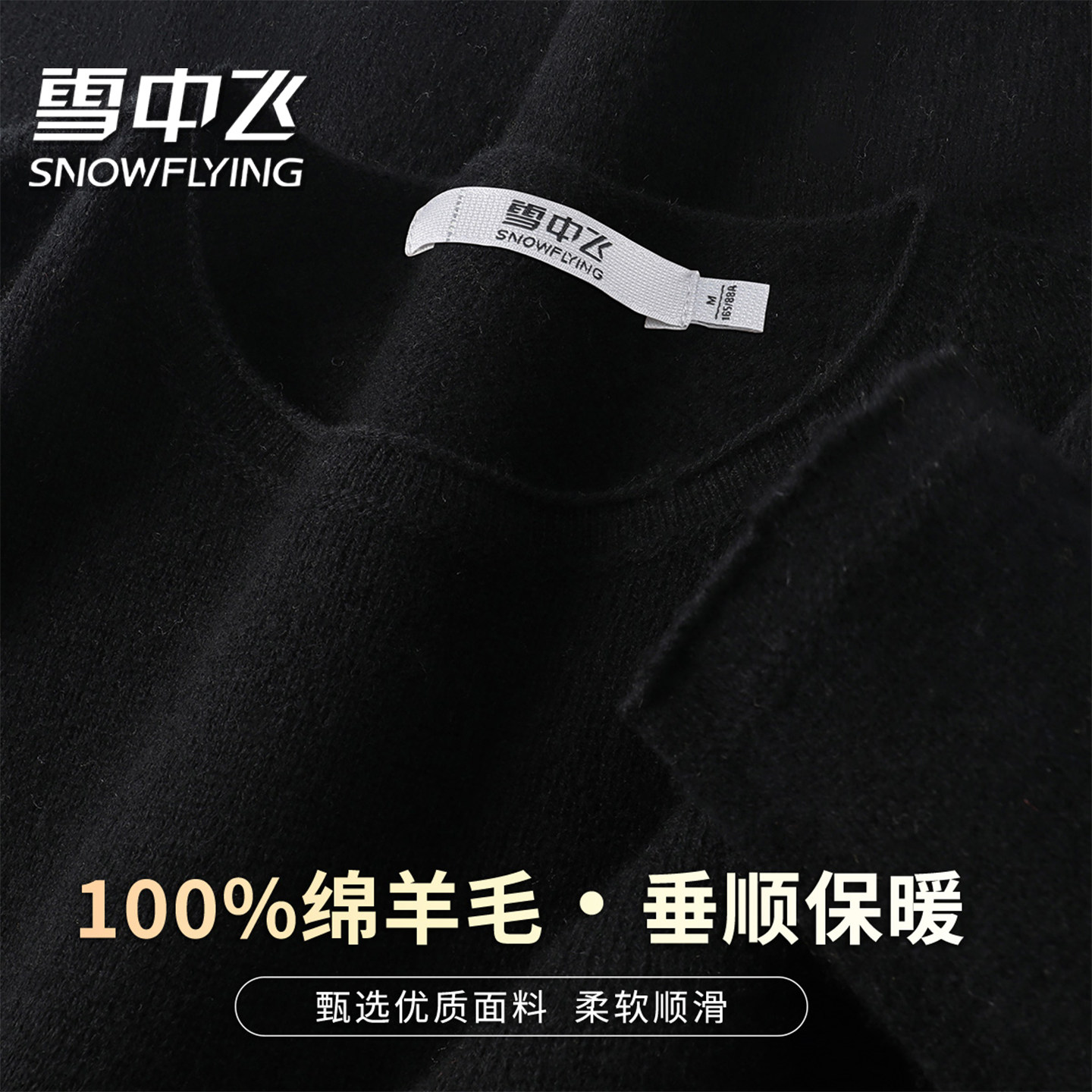 雪中飞【纯羊毛内搭】圆领套头秋冬针织衫女基础毛衣纯色羊毛衫W