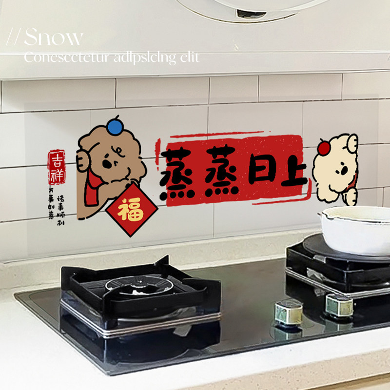 2026新款厨房防油贴纸耐高温灶台油烟机蒸蒸日上乔迁之喜新年装饰