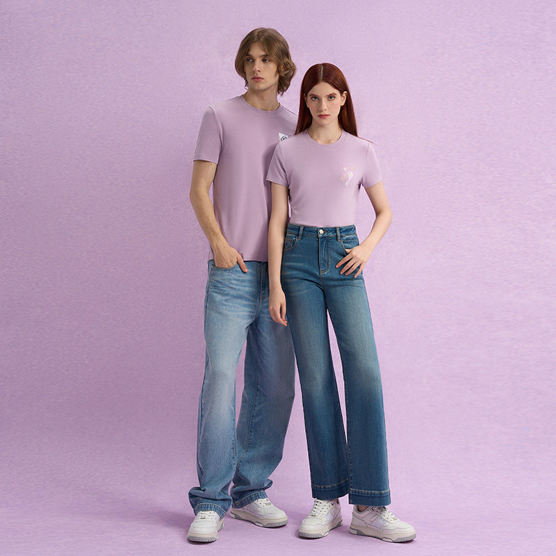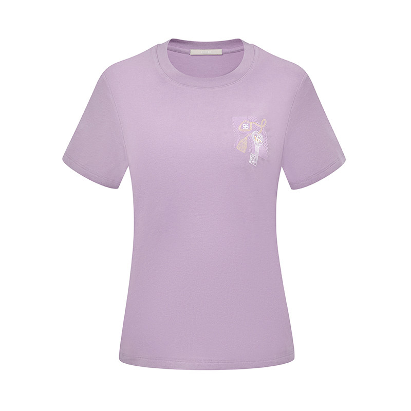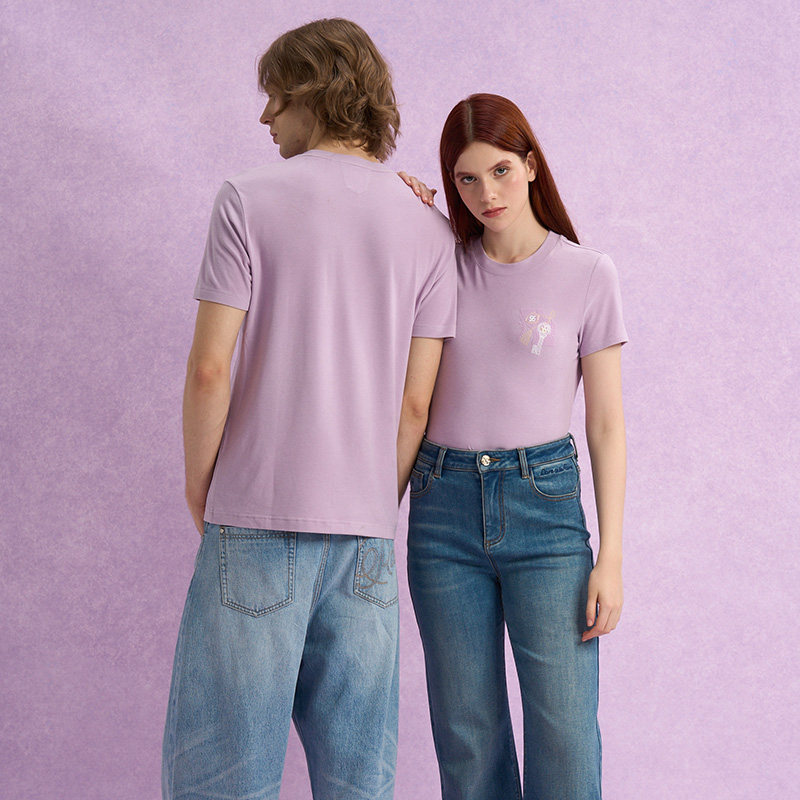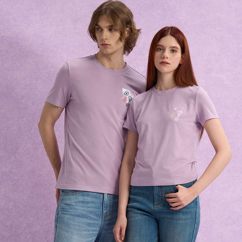 情侣款RARE威雅2025秋季蓄热磨毛短袖男女植绒刺绣工艺紫色T恤