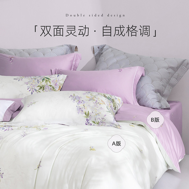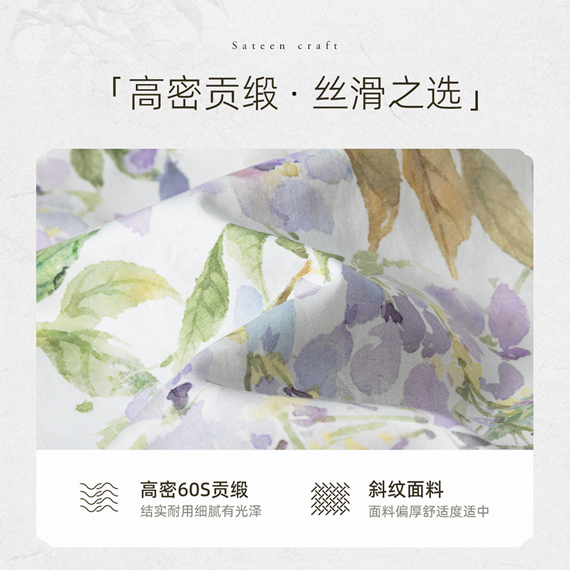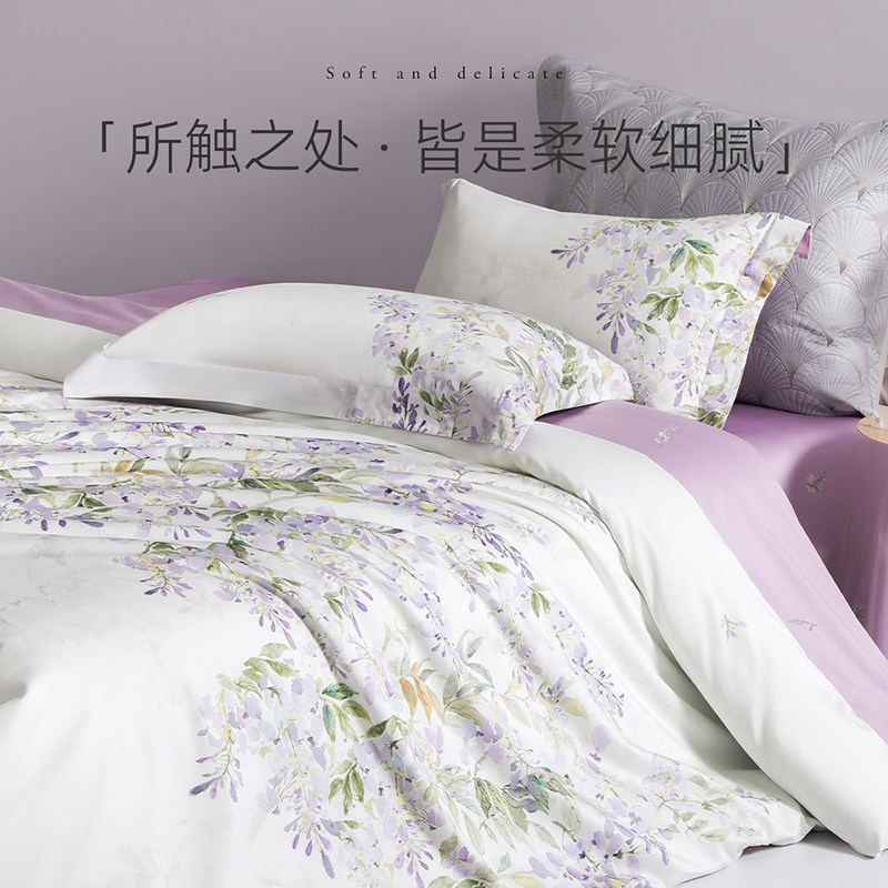 梦洁家纺60支长绒棉床上四件套纯棉全棉100印花床单被套轻奢床品