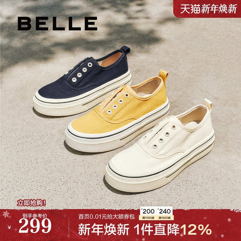 金晨同款百丽航海家帆布鞋厚底一脚蹬懒人鞋红色小白女鞋B2699CM5